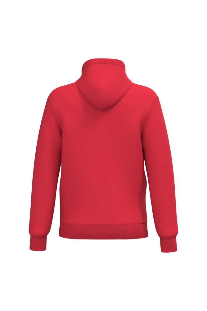 50% ringgesponnen katoen / 50% gerecycled polyester post-consumer. Geborsteld fleece aan de binnenkant. Straight snit. Cut-and-sew-techniek. 2x1 ribboord in buisconstructie voor een betere afwerking aan de hals, de mouwuiteinden en de onderkant. Kangoeroezak. Ritssluiting in nylon. Gevoerde capuchon in jersey-polykatoen met platte aanrijgkoordjes. Toon-op-toon nektape in jersey in de kraag. Geen merklabel in de kraag, maar enkel een maatlabel voor eenvoudige personalisatie.