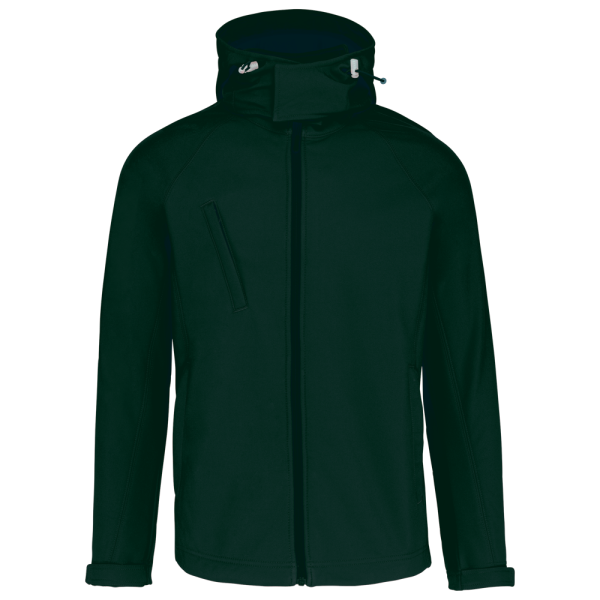 Stof in 3 lagen op elkaar geklit. Ademend 1000 g/m²/24h en 5000 mm waterdicht. Buitenkant: 95% polyester en 5% elasthan. Tussenlaag: ademend ventilerend membraan. Binnenkant: anti-pluis polyester. Raglan mouwen. Ritssluiting. 2 voorzakken met rits. 1 borstzak rechts met rits. Afneembare capuchon met aanrijgkoord en klittenbandsluiting. Klittenbandsluiting aan de mouwuiteinden. Verborgen drukkersrits op borsthoogte. Raglan mouwen.