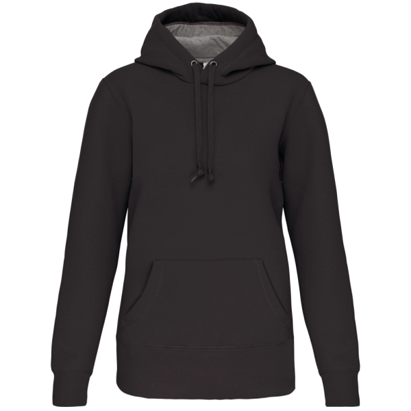80% katoen / 20% polyester. Gekamd katoen. Voorgekrompen en gekamd fleece aan binnenkant sweater. Sillicone wash. Gecontrasteerd nektape. Gecontrasteerde capuchon. 'Kangaroe' zak aan de voorkant. Afwerking in ribboord.