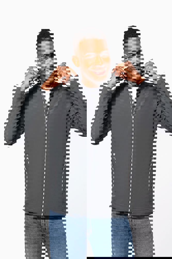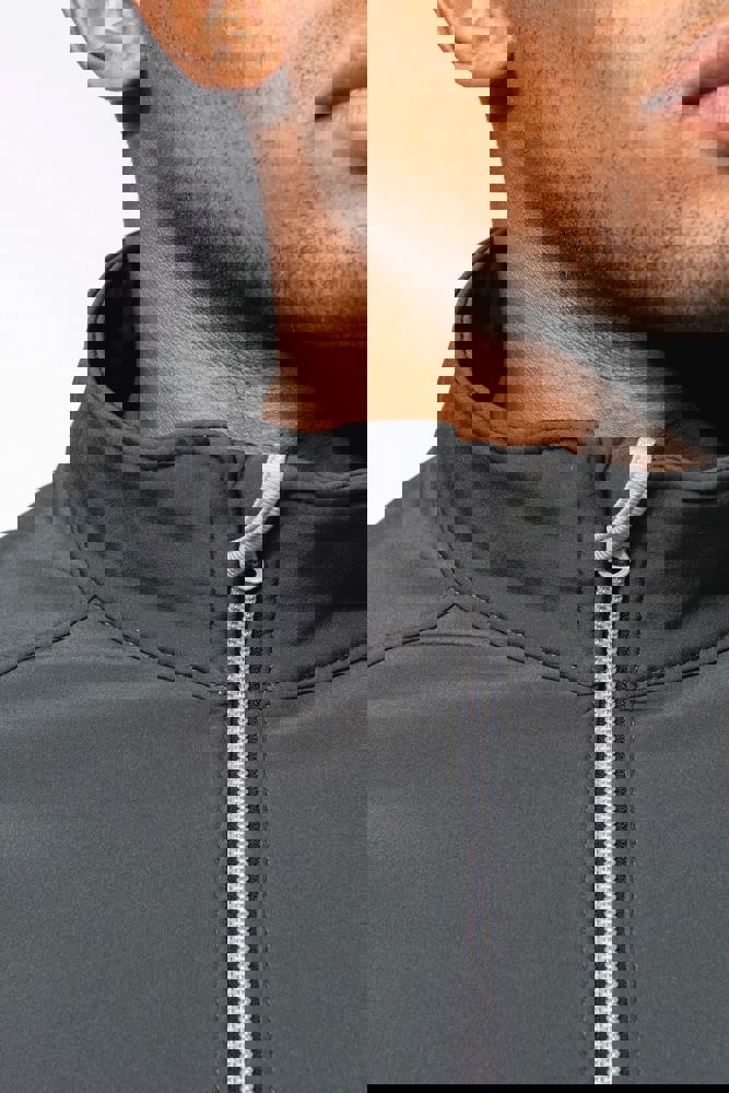 Buitenkant: 95% polyester / 5% elasthan. Binnenkant: 100% microfleece polyester. Waterafstotende stof. Rechte snit. 2 ritszakken aan de buitenkant. Contrasterende ritssluitingen. Verlengd achterpand. Stiksels op schouders en aan de zijkant.