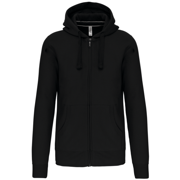 80% katoen / 20% polyester (Ash Heather: 79% katoen / 20% polyester / 1% viscose). Buitenoppervlak 100% gekamd katoen. Geborsteld fleece aan de binnenkant. Nektape in contrastkleur. (Navy voor de kleur Oxford Grey en Ash Heather ; Oxford Grey voor alle andere kleuren). Gevoerde capuchon in honinggraatstructuur met aanrijgkoordje. 'Kangaroe' zakken. Afwerking in rib aan de zakken, mouwuiteinden en onderaan. Ritssluiting.