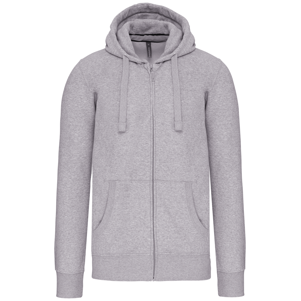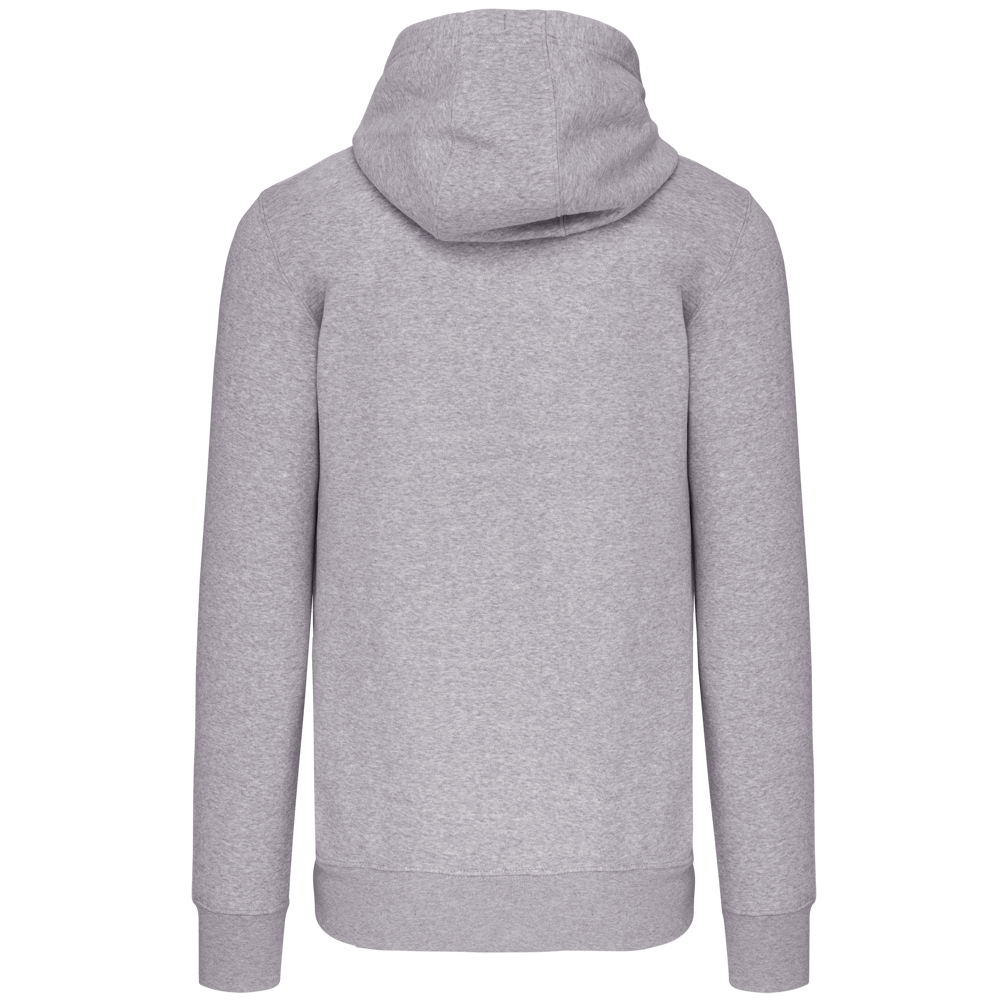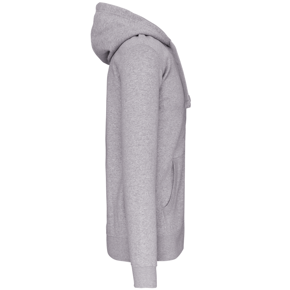 80% katoen / 20% polyester (Ash Heather: 79% katoen / 20% polyester / 1% viscose). Buitenoppervlak 100% gekamd katoen. Geborsteld fleece aan de binnenkant. Nektape in contrastkleur. (Navy voor de kleur Oxford Grey en Ash Heather ; Oxford Grey voor alle andere kleuren). Gevoerde capuchon in honinggraatstructuur met aanrijgkoordje. 'Kangaroe' zakken. Afwerking in rib aan de zakken, mouwuiteinden en onderaan. Ritssluiting.