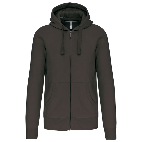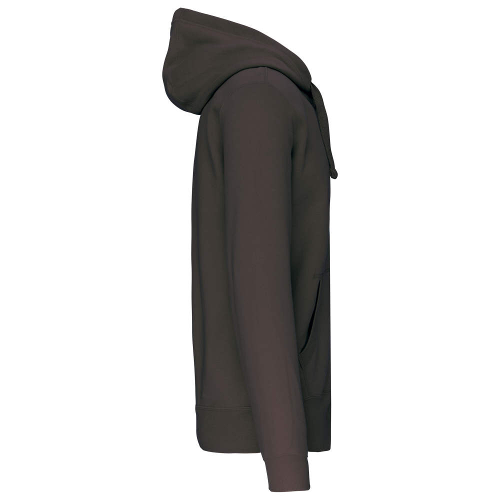 80% katoen / 20% polyester (Ash Heather: 79% katoen / 20% polyester / 1% viscose). Buitenoppervlak 100% gekamd katoen. Geborsteld fleece aan de binnenkant. Nektape in contrastkleur. (Navy voor de kleur Oxford Grey en Ash Heather ; Oxford Grey voor alle andere kleuren). Gevoerde capuchon in honinggraatstructuur met aanrijgkoordje. 'Kangaroe' zakken. Afwerking in rib aan de zakken, mouwuiteinden en onderaan. Ritssluiting.
