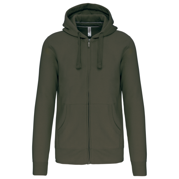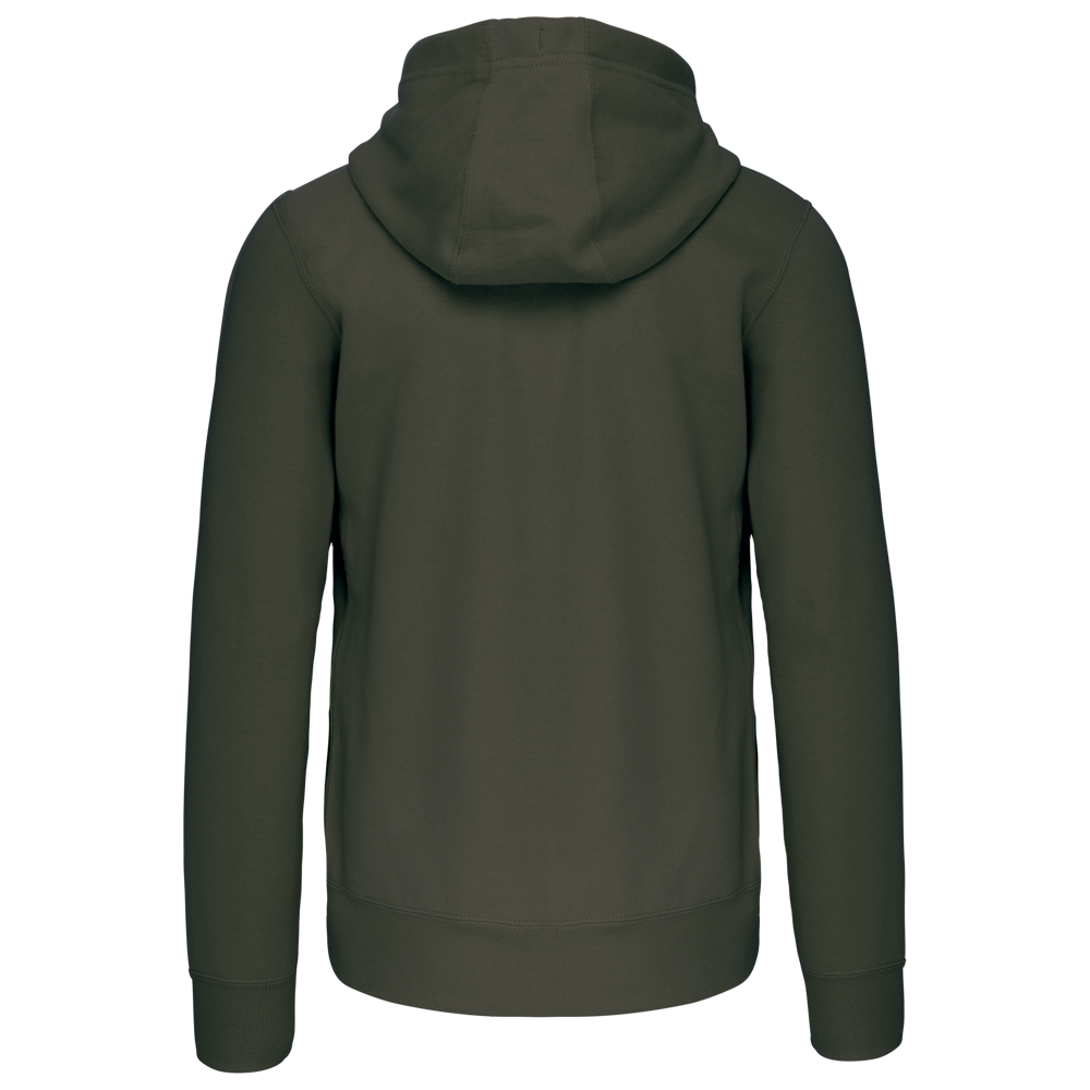 80% katoen / 20% polyester (Ash Heather: 79% katoen / 20% polyester / 1% viscose). Buitenoppervlak 100% gekamd katoen. Geborsteld fleece aan de binnenkant. Nektape in contrastkleur. (Navy voor de kleur Oxford Grey en Ash Heather ; Oxford Grey voor alle andere kleuren). Gevoerde capuchon in honinggraatstructuur met aanrijgkoordje. 'Kangaroe' zakken. Afwerking in rib aan de zakken, mouwuiteinden en onderaan. Ritssluiting.