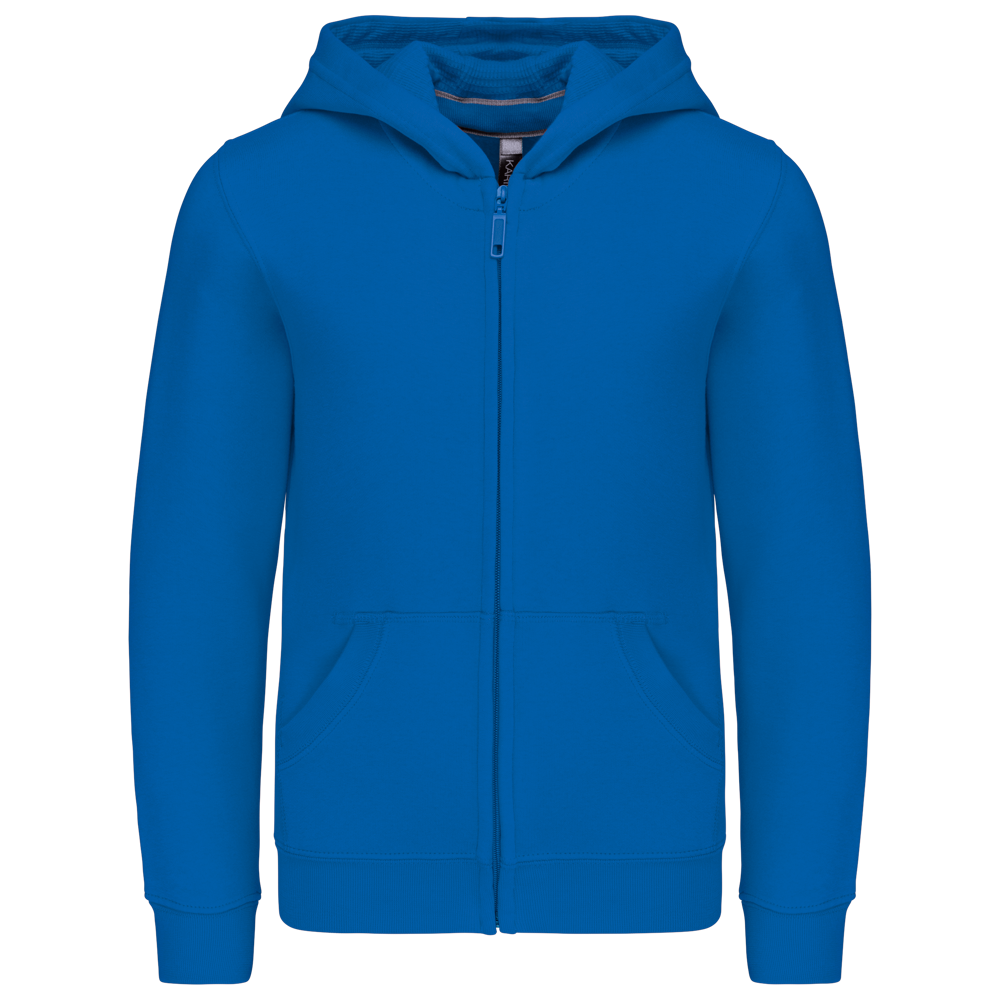 80% katoen / 20% polyester. Gekamd katoen. Geborsteld fleece aan de binnenkant. Nektape in contrastkleur. (Navy voor de kleur Oxford Grey en Oxford Grey voor alle andere kleuren). Gevoerde capuchon in honinggraatstructuur. 'Kangaroe' zakken. Afwerking in rib aan de zakken, mouwuiteinden en onderaan. Ritssluiting.