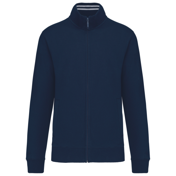 80% katoen / 20% polyester. Gekamd katoen. Low Shrunkage Fleece. Geborsteld en voorgekrompen fleece aan de binnenkant. Gewassen met siliconen. Rechte snit dankzij verticale inzetstukken in rib. Toon op toon nektape. (Behalve voor de kleur White = Oxford Grey nektape) Binnenkant kraag in rib met lijnen in contrastkleur. 2 voorzakken. Ribboord aan de mouwuiteinden en onderaan. Ritssluiting.