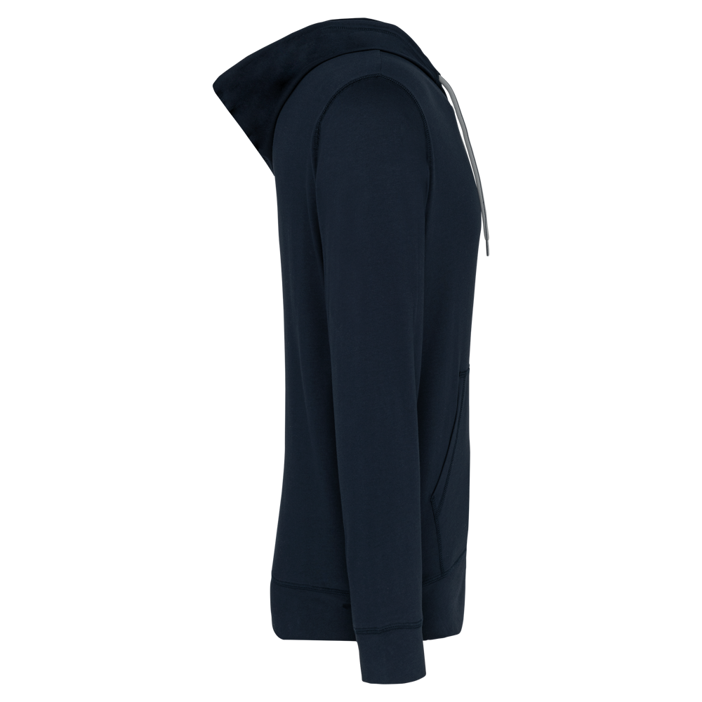 100% katoen (Oxford Grey: 90% katoen / 10% viscose). Gekamd katoen enzymgewassen. Voelt zacht aan. Losvallende moderne snit. Nektape in contrasterende kleur (Dark Grey voor de kleur Oxford Grey en Oxford Grey voor de andere kleuren). 2 kangoeroezakken. Mouwen en onderkant in hetzelfde materiaal. Contrasterende rits en tweekleurige aanrijgkoordjes aan de capuchon.