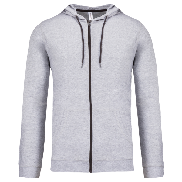 100% katoen (Oxford Grey: 90% katoen / 10% viscose). Gekamd katoen enzymgewassen. Voelt zacht aan. Losvallende moderne snit. Nektape in contrasterende kleur (Dark Grey voor de kleur Oxford Grey en Oxford Grey voor de andere kleuren). 2 kangoeroezakken. Mouwen en onderkant in hetzelfde materiaal. Contrasterende rits en tweekleurige aanrijgkoordjes aan de capuchon.