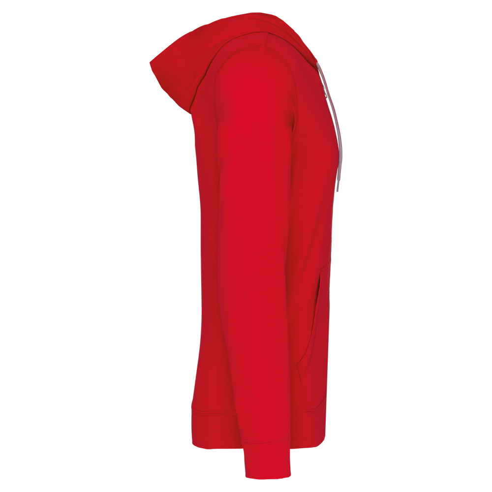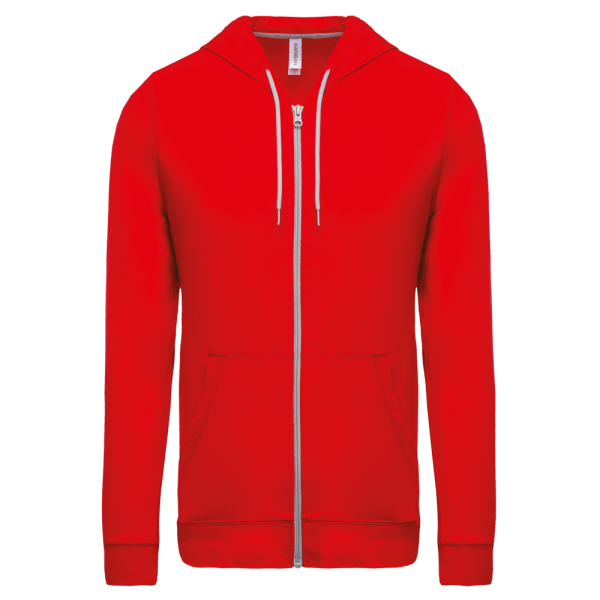 100% katoen (Oxford Grey: 90% katoen / 10% viscose). Gekamd katoen enzymgewassen. Voelt zacht aan. Losvallende moderne snit. Nektape in contrasterende kleur (Dark Grey voor de kleur Oxford Grey en Oxford Grey voor de andere kleuren). 2 kangoeroezakken. Mouwen en onderkant in hetzelfde materiaal. Contrasterende rits en tweekleurige aanrijgkoordjes aan de capuchon.