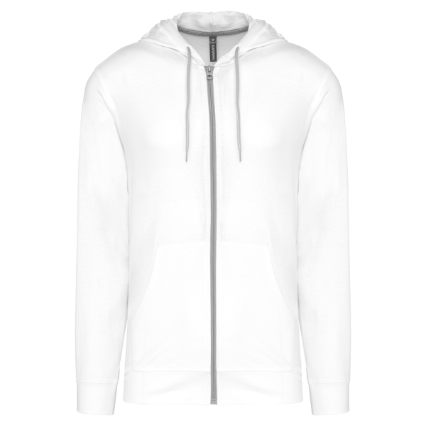100% katoen (Oxford Grey: 90% katoen / 10% viscose). Gekamd katoen enzymgewassen. Voelt zacht aan. Losvallende moderne snit. Nektape in contrasterende kleur (Dark Grey voor de kleur Oxford Grey en Oxford Grey voor de andere kleuren). 2 kangoeroezakken. Mouwen en onderkant in hetzelfde materiaal. Contrasterende rits en tweekleurige aanrijgkoordjes aan de capuchon.