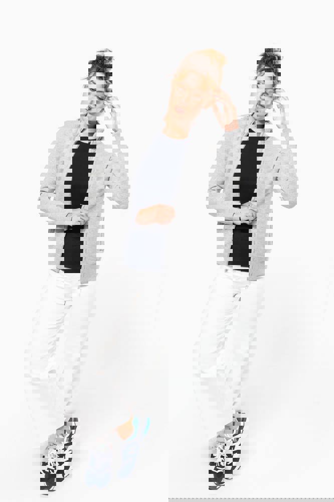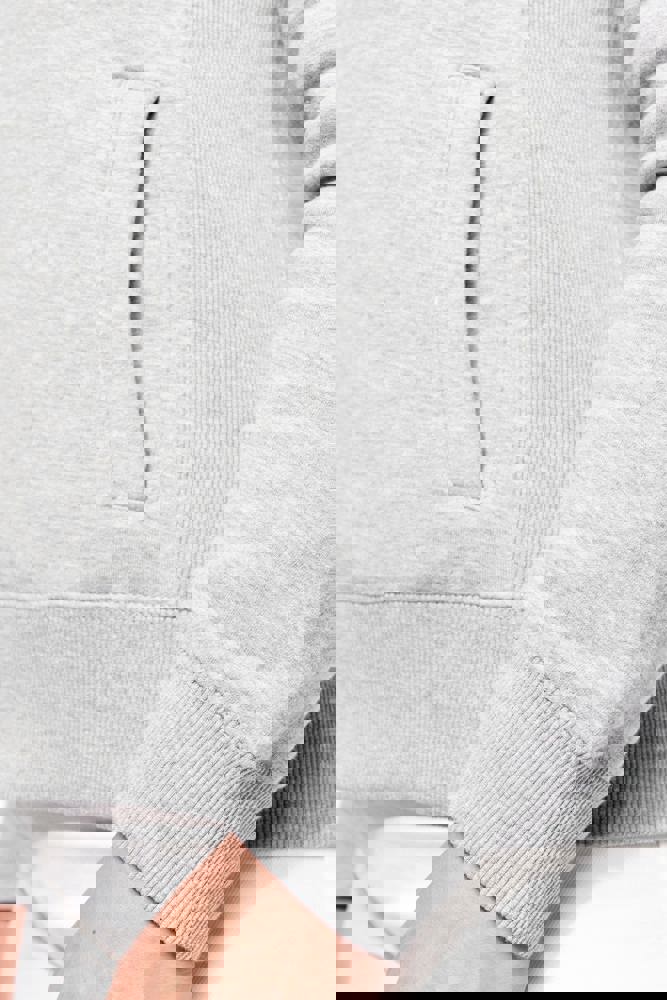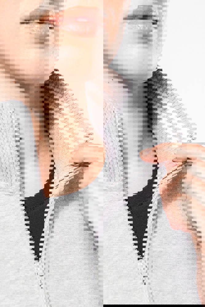80% katoen / 20% polyester. Gekamd katoen. Low Shrunkage Fleece. Geborsteld en voorgekrompen fleece aan de binnenkant. Gewassen met siliconen. Rechte snit dankzij verticale inzetstukken in rib. Toon op toon nektape. (Behalve voor de kleur White = Oxford Grey nektape) Binnenkant kraag in rib met lijnen in contrastkleur. 2 voorzakken. Ribboord aan de mouwuiteinden en onderaan. Ritssluiting.