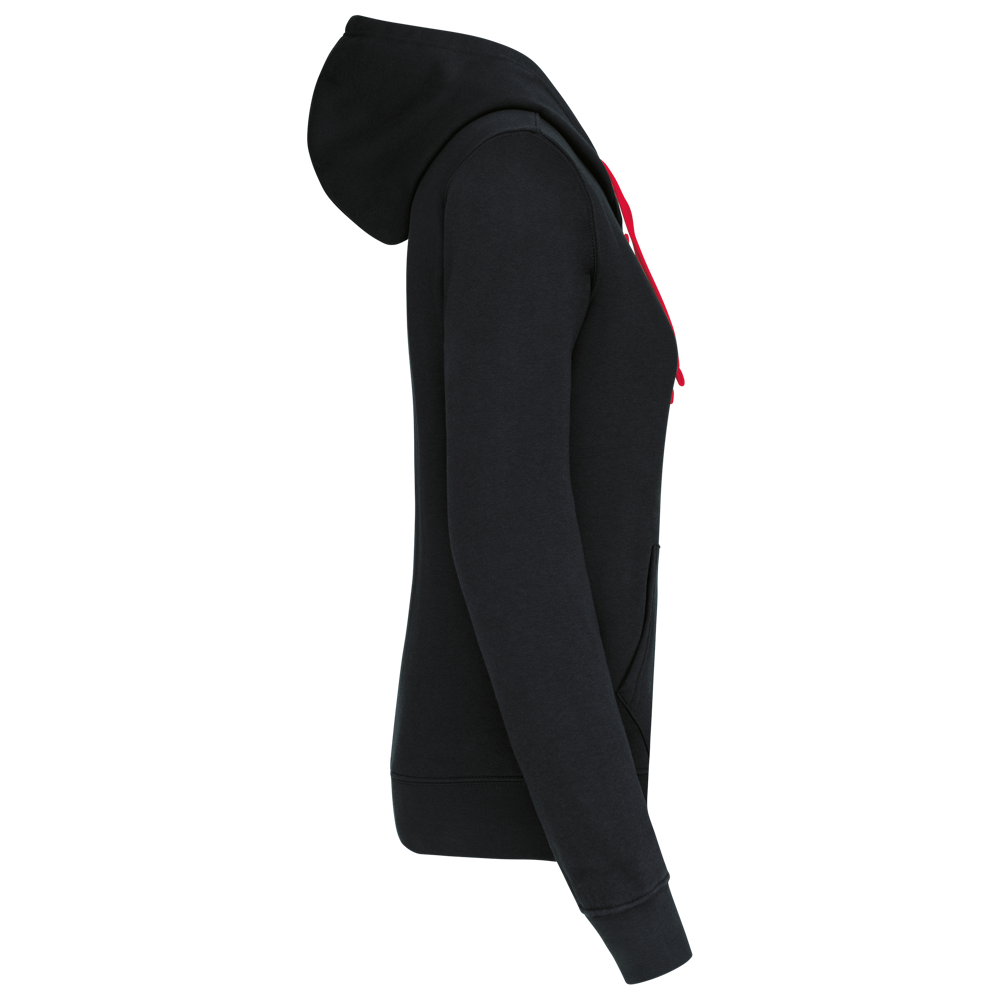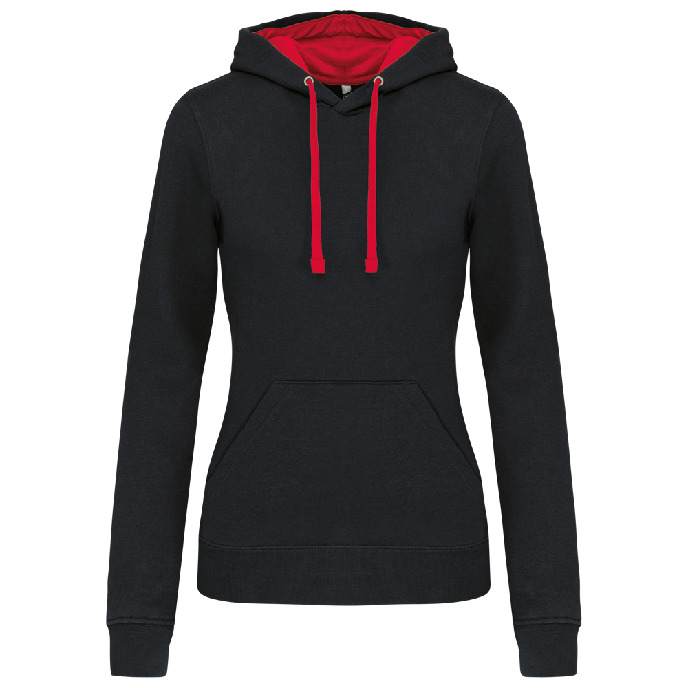80% katoen / 20% polyester. Gekamd katoen. Geborsteld fleece aan de binnenkant. Gaatje voor draadje in de kangoeroezak en lusje aan de kraag voor oortjes. Ribboord aan mouwuiteinden en onderkant kledingstuk. Gevoerde capuchon in contrasterende kleur met aanrijgkoordjes.