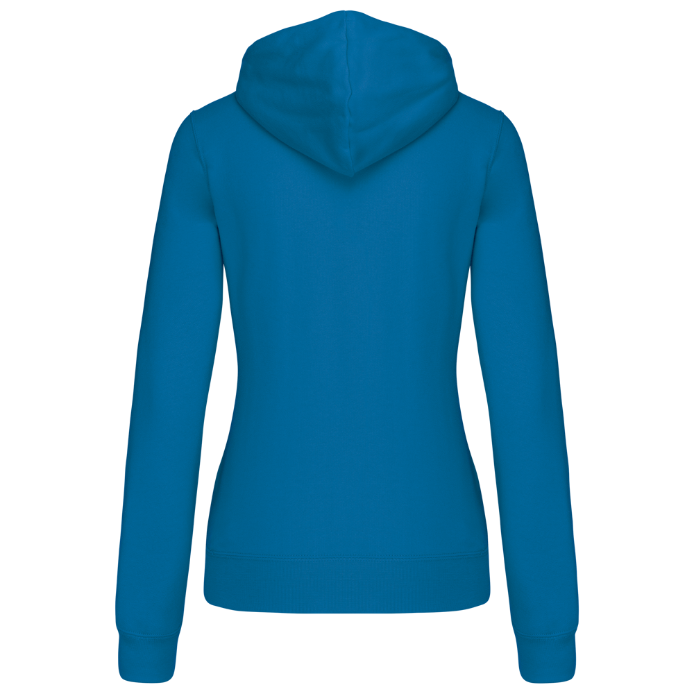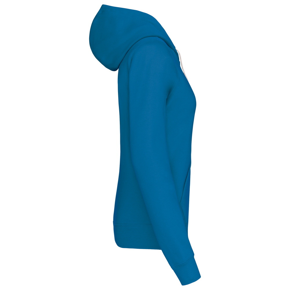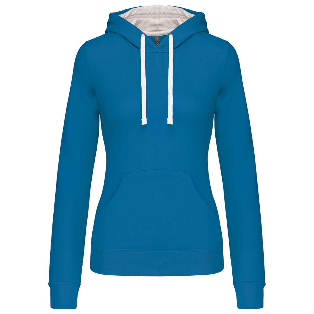 80% katoen / 20% polyester. Gekamd katoen. Geborsteld fleece aan de binnenkant. Gaatje voor draadje in de kangoeroezak en lusje aan de kraag voor oortjes. Ribboord aan mouwuiteinden en onderkant kledingstuk. Gevoerde capuchon in contrasterende kleur met aanrijgkoordjes.