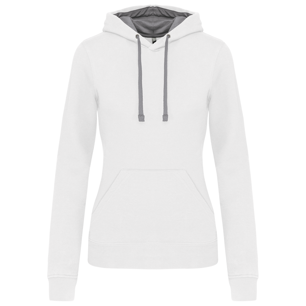 80% katoen / 20% polyester. Gekamd katoen. Geborsteld fleece aan de binnenkant. Gaatje voor draadje in de kangoeroezak en lusje aan de kraag voor oortjes. Ribboord aan mouwuiteinden en onderkant kledingstuk. Gevoerde capuchon in contrasterende kleur met aanrijgkoordjes.