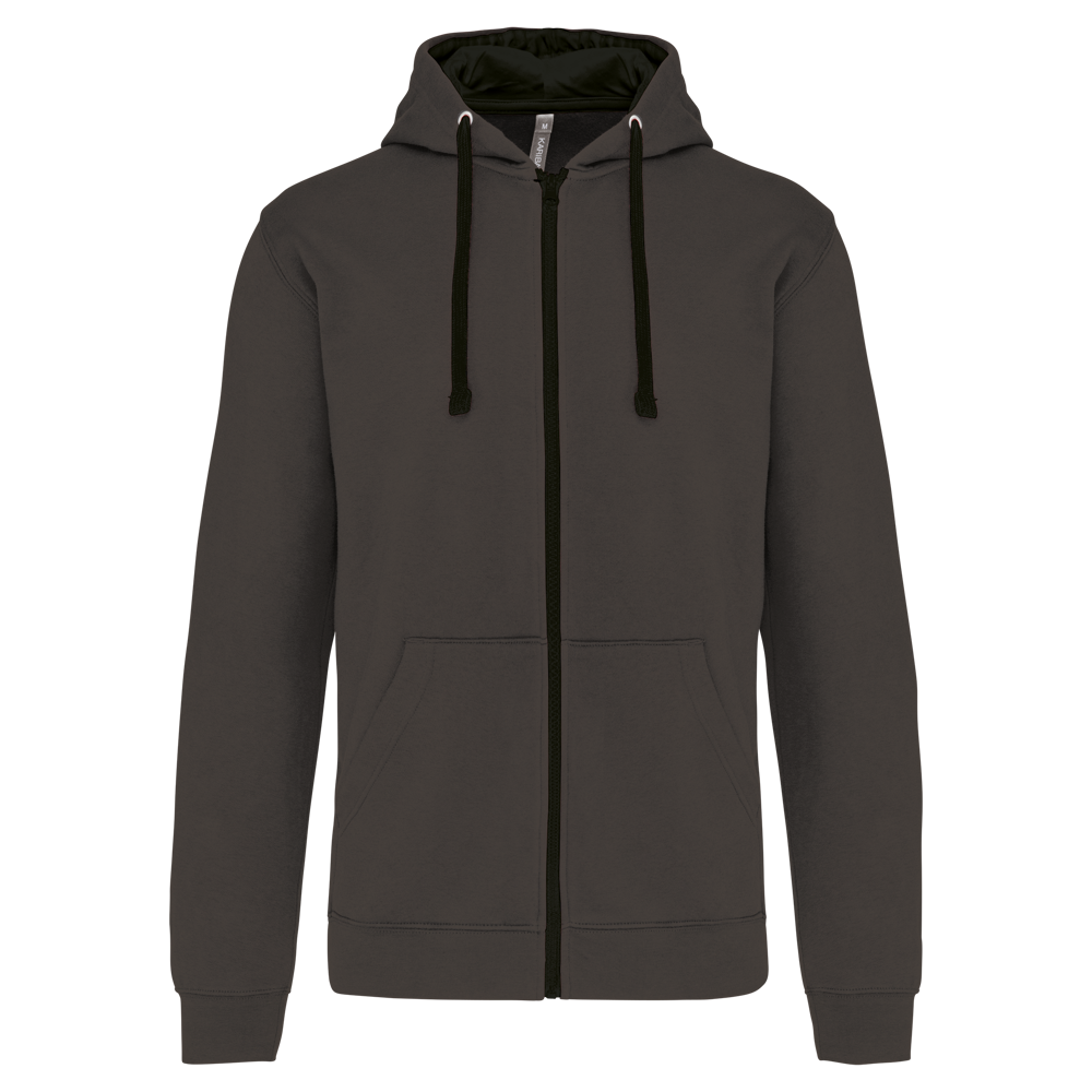 K466 - Herensweater met rits en capuchon in contrasterende kleur