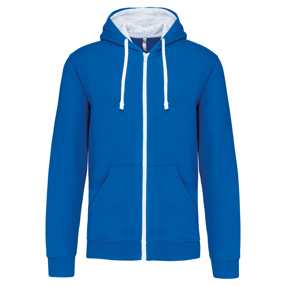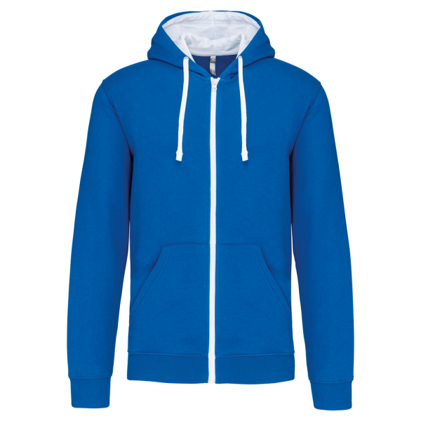 K466 - Herensweater met rits en capuchon in contrasterende kleur