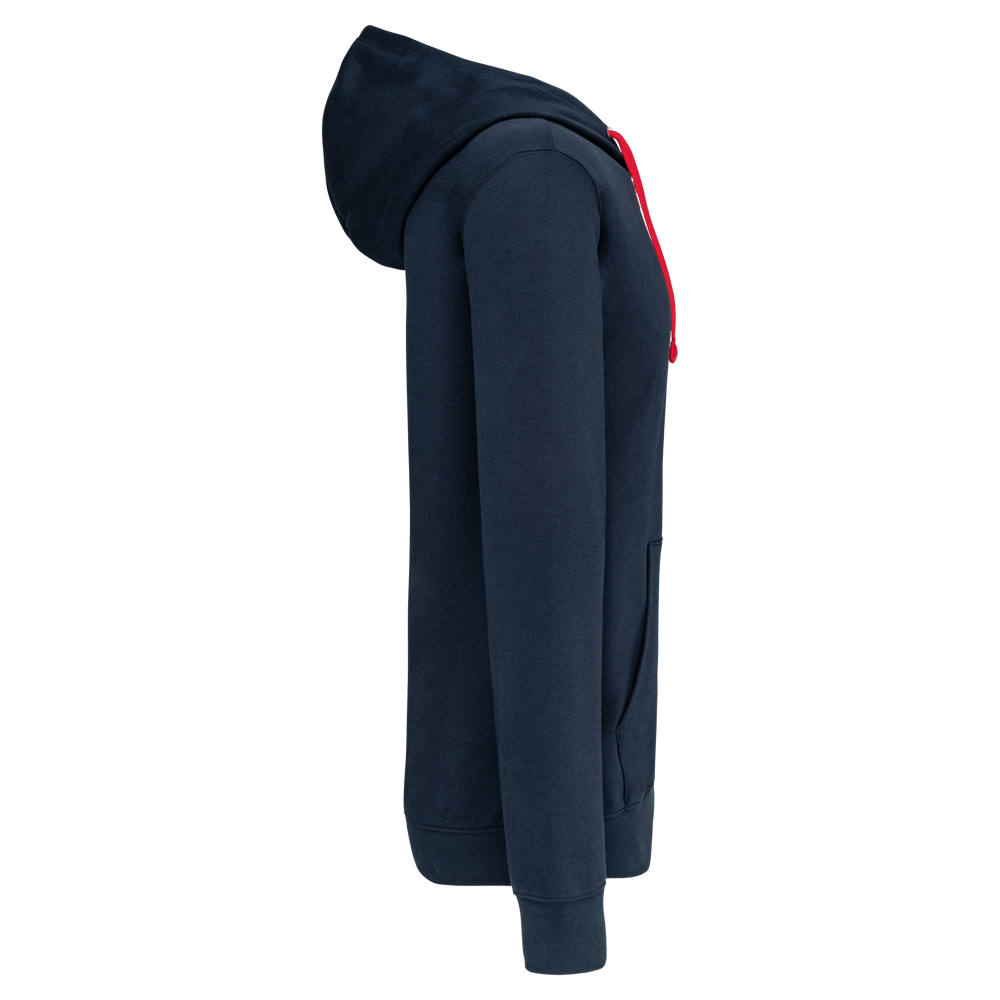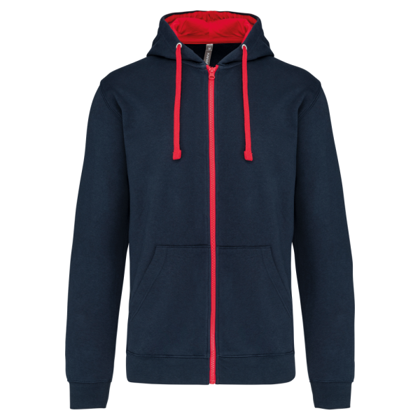 K466 - Herensweater met rits en capuchon in contrasterende kleur