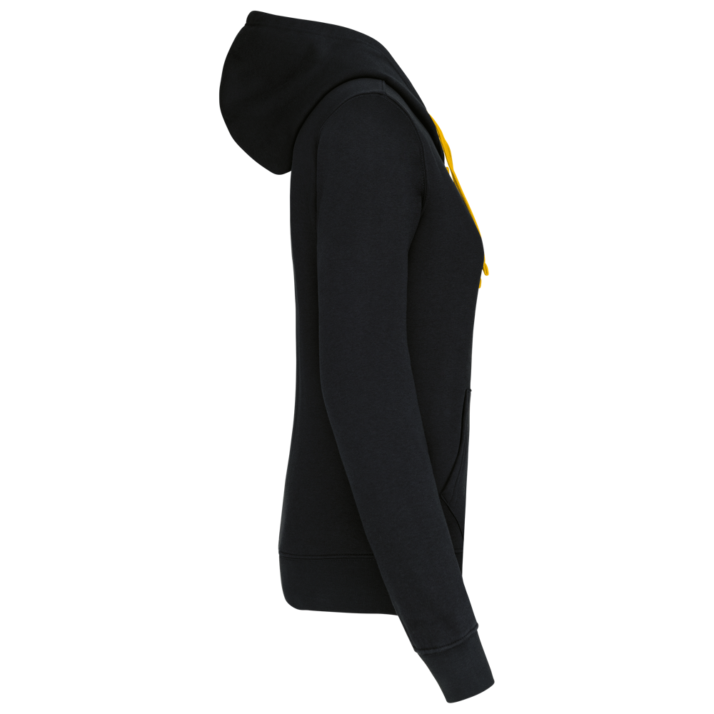 K467 - Damessweater met rits en capuchon in contrasterende kleur