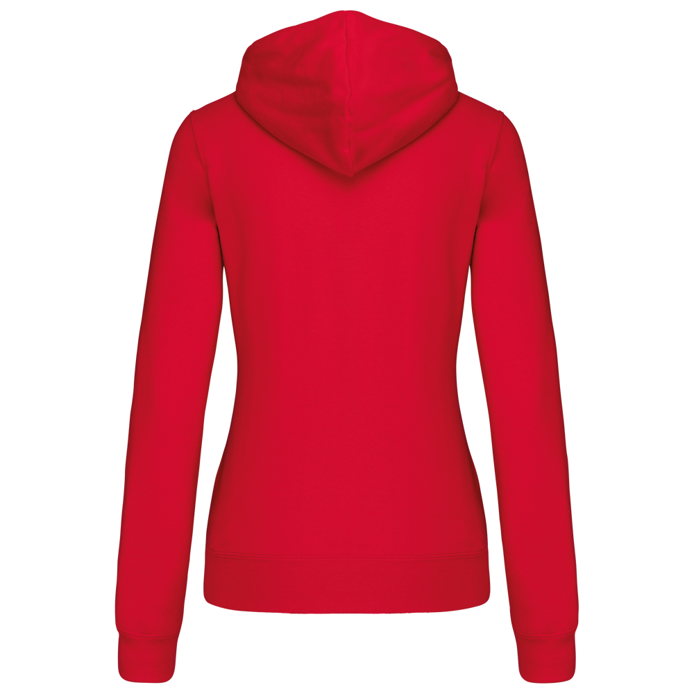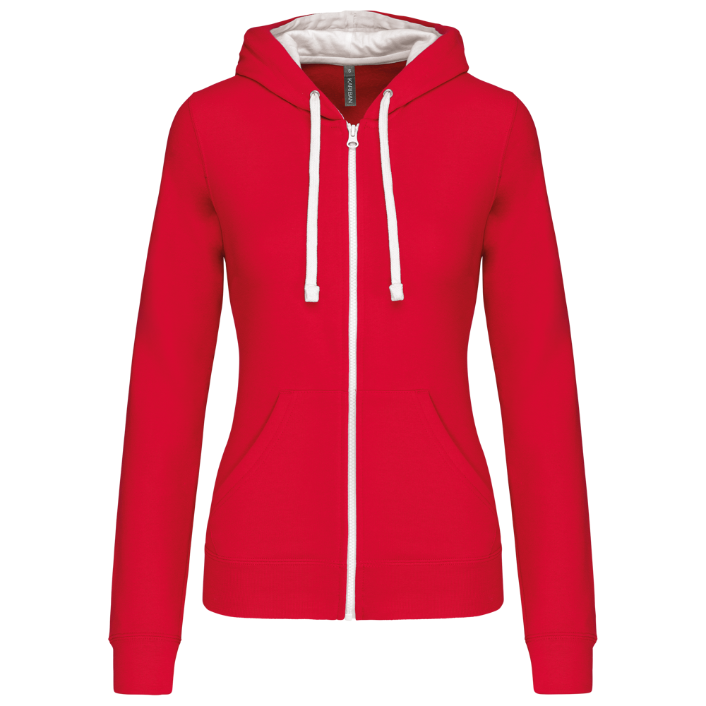 K467 - Damessweater met rits en capuchon in contrasterende kleur