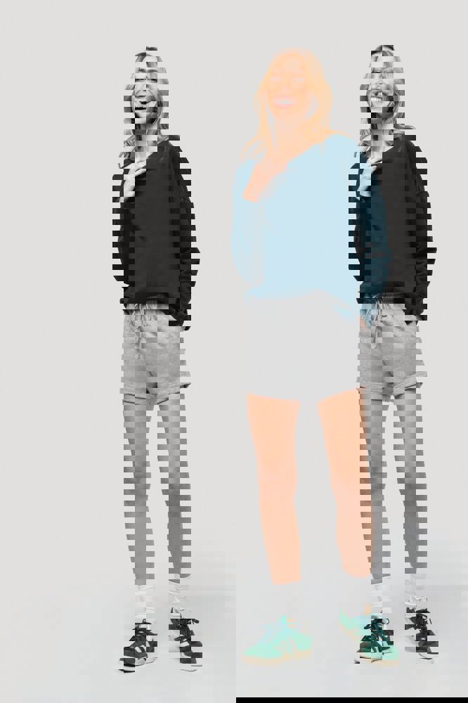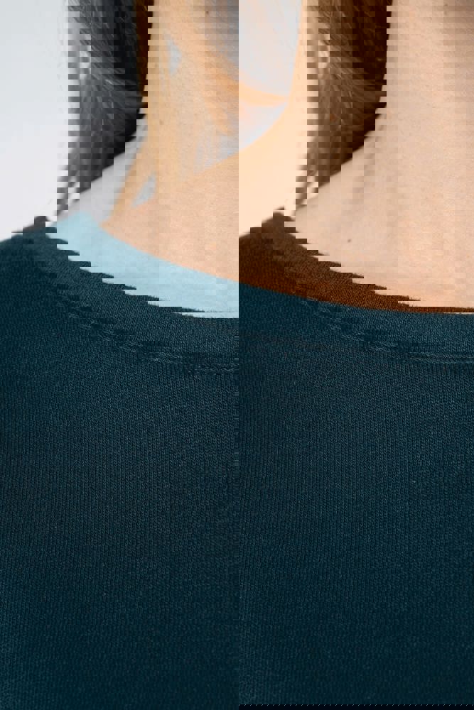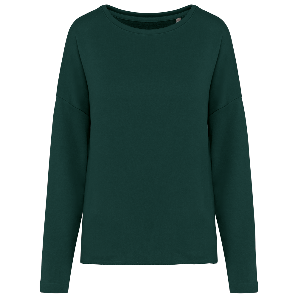 91% katoen / 9% polyester (Light Grey Heather: 87% katoen / 9% polyester / 4% viscose). Fleece “French Terry”. Voelt heel zacht aan. Casual, losse snit met brede halsopening. Nektape met visgraatmotief. Onafgewerkte boorden onderaan. Dubbel stiksel aan de mouwuiteinden.