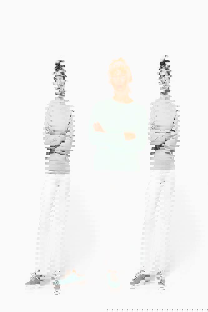 Kleuren Snow Grey, Sage en Lemon Yellow : 80% katoen / 20% polyester. Gemaakt van 80% biologisch katoen en 20% gerecycled polyester. Kleuren Black, French Navy Heather, Grey Heather, Mossy Green, Navy, Ocean Blue Heather, Red, Storm Grey and Wine Heather : 80% katoen / 20% polyester. Gemaakt van 80% biologisch katoen en 20% polyester. French Terry. LST (Low Shrinkage Terry). Modieuze snit. Ribboord aan halsopening, mouwuiteinden en aan de onderkant. Nektape in twill aan de binnenzijde van de kraag en V-afwerking aan de halsopening. Geen merklabel in de kraag, maar enkel een maatlabel voor eenvoudige personalisatie.