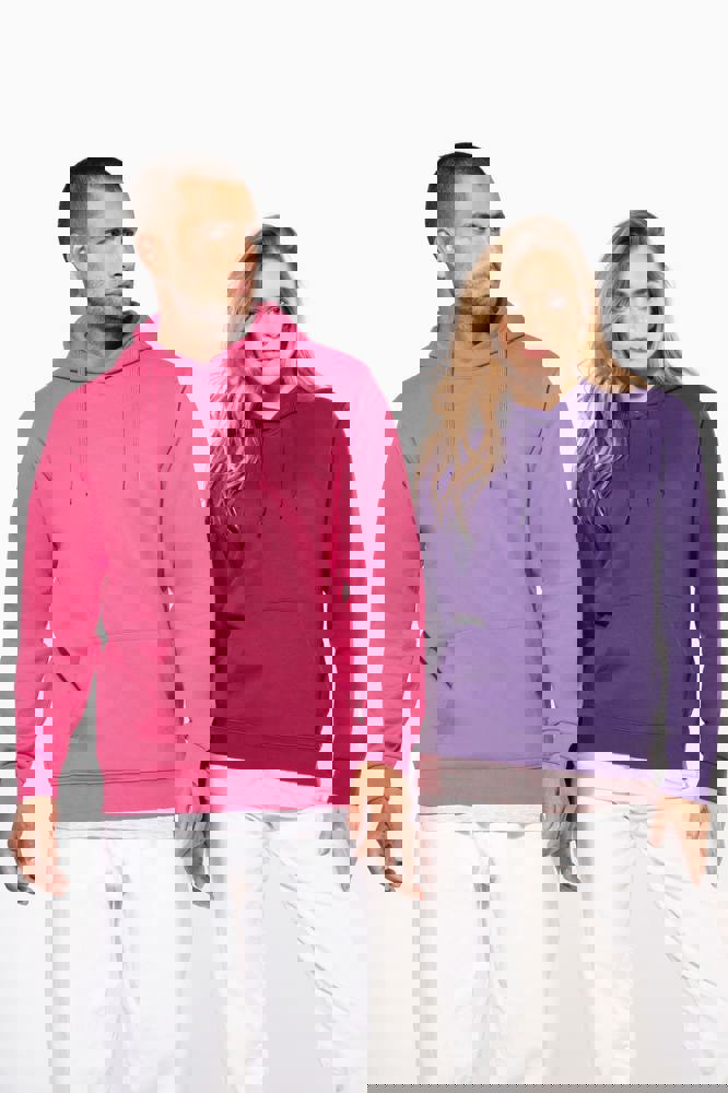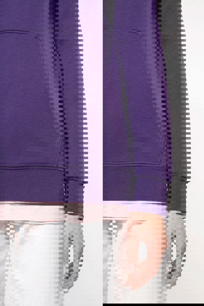 80% katoen / 20% polyester. Gekamd katoen. Geborsteld fleece aan de binnenkant. Ingezette mouwen. Gevoerde capuchon met toon op toon aanrijgkoordjes. Kangoeroezakken. Ribboord aan mouwuiteinden en aan de onderkant.