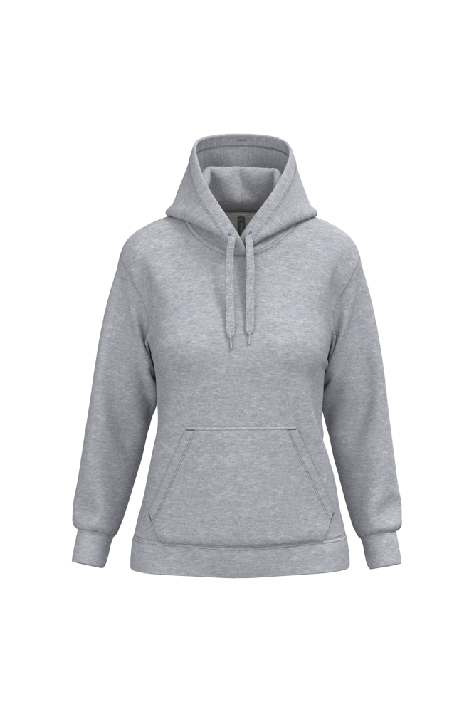 80% katoen / 20% polyester. Gekamd katoen. Geborsteld fleece aan de binnenkant. Ingezette mouwen. Gevoerde capuchon met toon op toon aanrijgkoordjes. Kangoeroezakken. Ribboord aan mouwuiteinden en aan de onderkant.