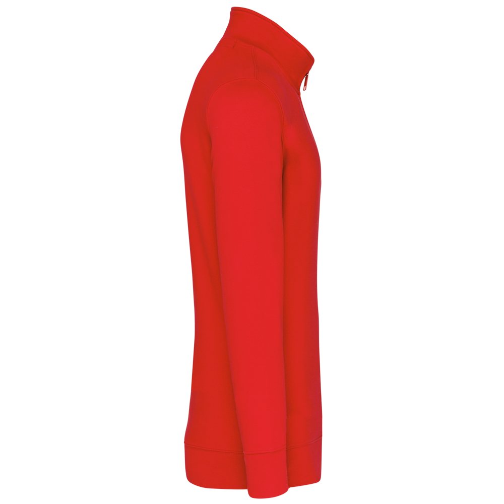 80% katoen / 20% polyester (Ash Heather : 79% katoen / 20% polyester / 1% viscose). Buitenoppervlak 100% katoen. LSF-behandeling (Low Shrinkage Fleece : voorgekrompen fleece). Aan de binnenkant geborsteld fleece 3 draden van gekamd katoen. Ingezette mouwen. Kraag met toon-op-toon plastic ritssluiting. Nektape in contrasterende kleur aan de halsopening (Navy voor de kleur Oxford Grey en Ash Heather ; Oxford Grey voor alle andere kleuren). Ribboord aan mouwuiteinden en aan de onderkant.