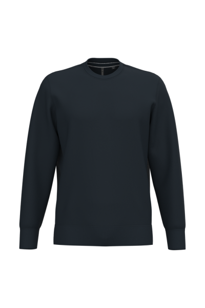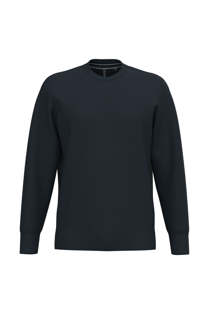 80% katoen / 20% polyester (Ash Heather: 79% katoen / 20% polyester / 1% viscose). Buitenoppervlak 100% katoen. LSF-behandeling (Low Shrinkage Fleece: voorgekrompen fleece). Aan de binnenkant geborsteld fleece 3 draden van gekamd katoen. Ingezette mouwen. Nektape in contrasterende kleur aan de halsopening (Navy voor de kleur Oxford Grey en Ash Heather ; Oxford Grey voor alle andere kleuren). Ribboord aan mouwuiteinden en aan de onderkant.