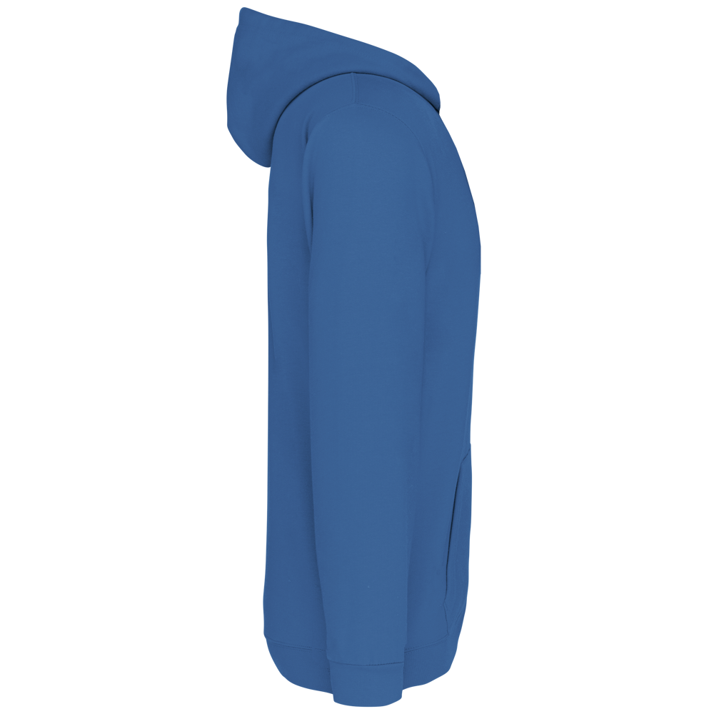 80% katoen / 20% polyester. Gekamd katoen. Geborsteld fleece aan de binnenkant. Ingezette mouwen. Gevoerde capuchon. Kangoeroezakken. Ribboord aan mouwuiteinden en aan de onderkant.