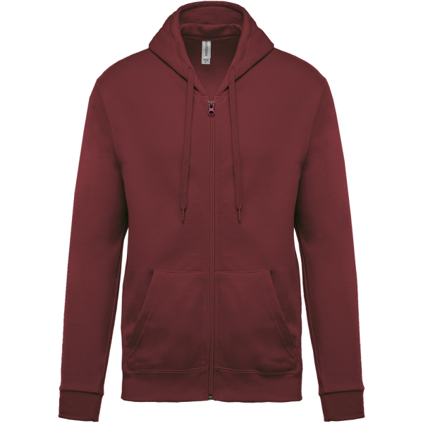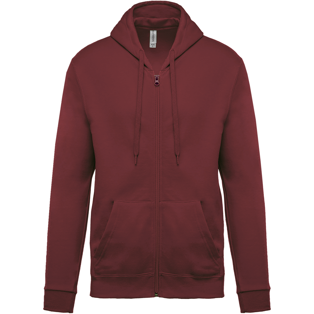 80% katoen / 20% polyester. Gekamd katoen. Geborsteld fleece aan de binnenkant. Ingezette mouwen. Nylon ritssluiting. Gevoerde capuchon met toon op toon aanrijgkoordjes. Kangoeroezakken. Ribboord aan mouwuiteinden en aan de onderkant.