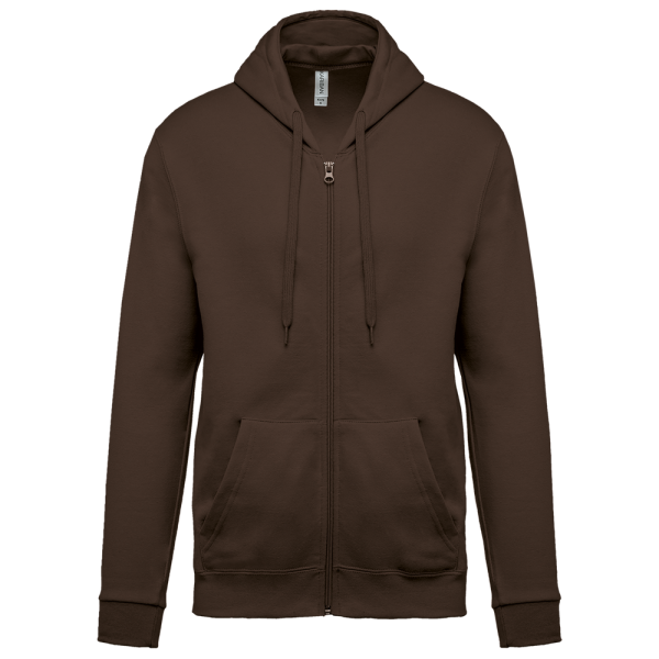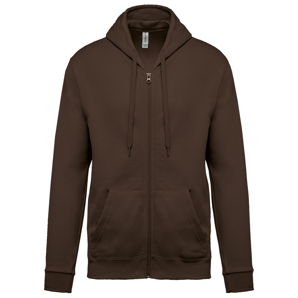 80% katoen / 20% polyester. Gekamd katoen. Geborsteld fleece aan de binnenkant. Ingezette mouwen. Nylon ritssluiting. Gevoerde capuchon met toon op toon aanrijgkoordjes. Kangoeroezakken. Ribboord aan mouwuiteinden en aan de onderkant.