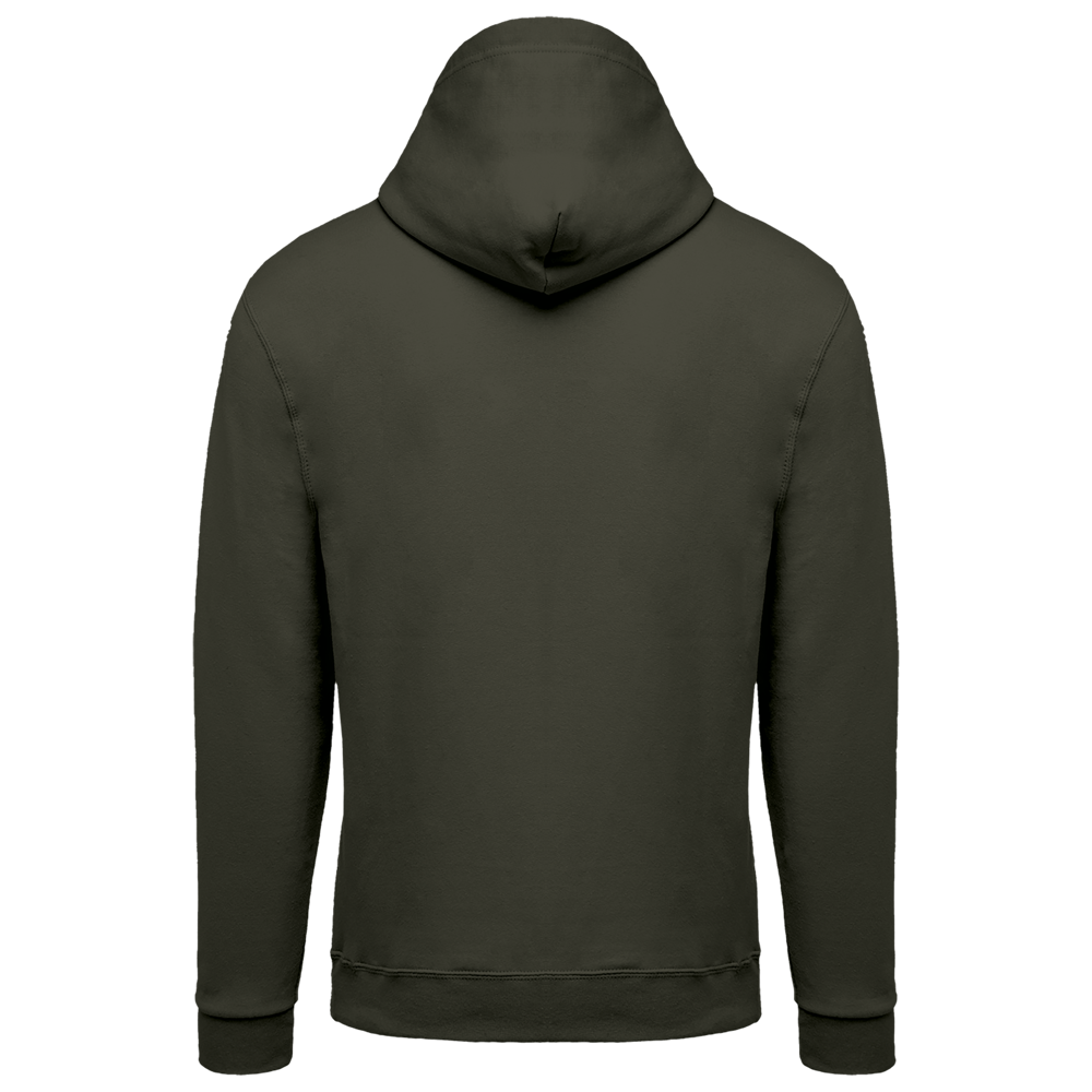 80% katoen / 20% polyester. Gekamd katoen. Geborsteld fleece aan de binnenkant. Ingezette mouwen. Nylon ritssluiting. Gevoerde capuchon met toon op toon aanrijgkoordjes. Kangoeroezakken. Ribboord aan mouwuiteinden en aan de onderkant.