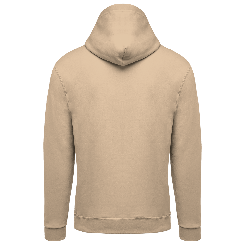 80% katoen / 20% polyester. Gekamd katoen. Geborsteld fleece aan de binnenkant. Ingezette mouwen. Nylon ritssluiting. Gevoerde capuchon met toon op toon aanrijgkoordjes. Kangoeroezakken. Ribboord aan mouwuiteinden en aan de onderkant.