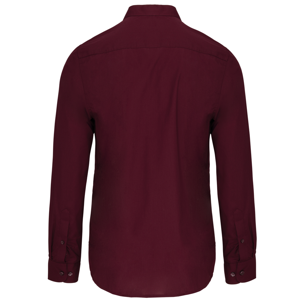 65% polyester / 35% katoen popeline. Easy Care. Mao kraag zonder knopen. Knooplijst met toon op toon knopen. Borstzakje links met afgeronde hoeken. Verstelbare mouwuiteinden met afgeronde manchetten. 2 reserveknopen.