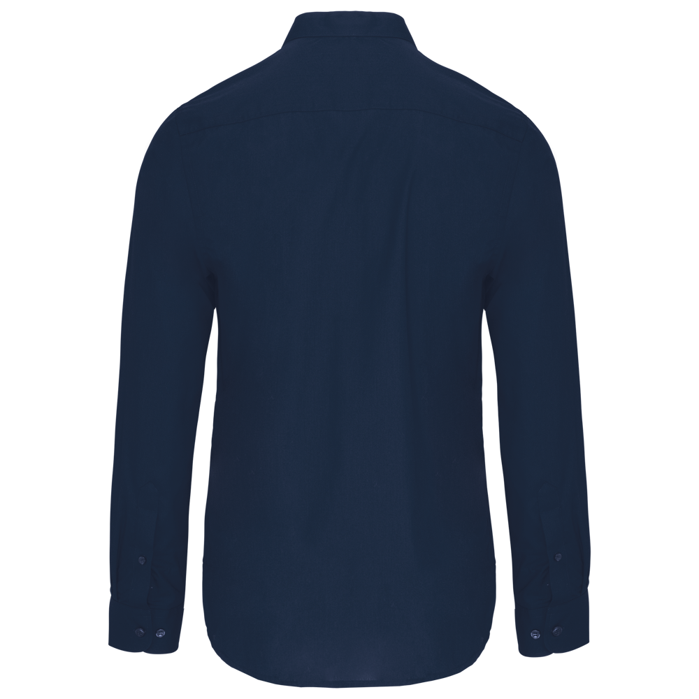 65% polyester / 35% katoen popeline. Easy Care. Mao kraag zonder knopen. Knooplijst met toon op toon knopen. Borstzakje links met afgeronde hoeken. Verstelbare mouwuiteinden met afgeronde manchetten. 2 reserveknopen.