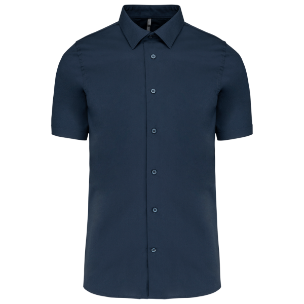 97% katoen / 3% elasthan. Getailleerd overhemd en comfortabele pasvorm. Verstevigde kraag. Toon op toon knopen. Dubbel inzetstuk op de rug. Plooitjes aan de achterkant. Afgewerkt met dubbele vouwnaden. Mouwuiteinden omgezoomd. 1 extra knoop. Afgerond boord aan de onderkant.