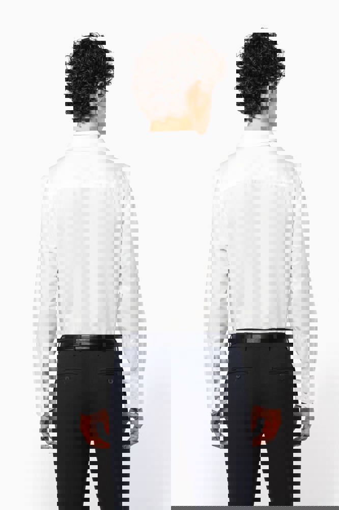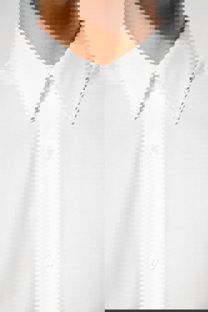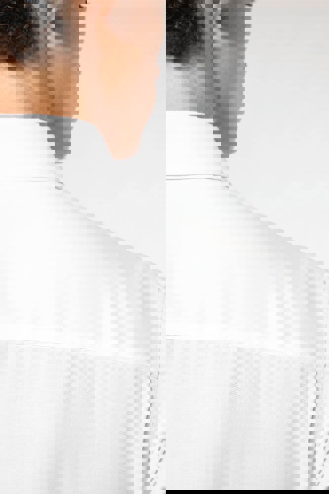 100% katoen. Micro sergé katoen. Non-iron technologie. Kraag zonder knopen. Toon op toon knopen. Dubbel inzetstuk op de rug. Afgewerkt met dubbele vouwnaden. Verstelbare omgeslagen mouwen met knoopjes. 2 extra knopen. Afgerond boord aan de onderkant.