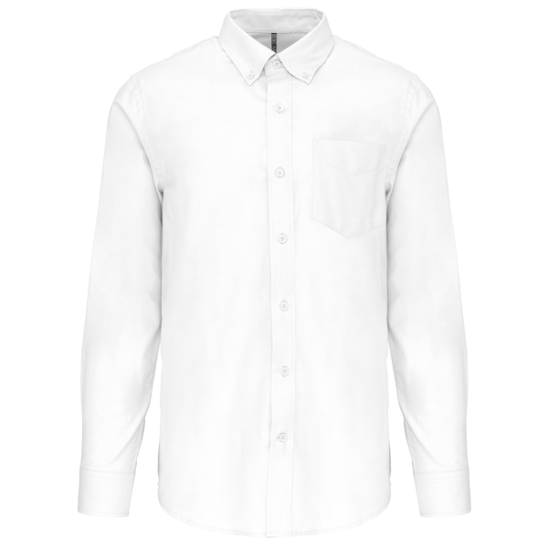 70% oxford katoen / 30% polyester. Gemakkelijk in onderhoud ( Easy Care). Button down. Toon op toon knopen. Borstzakje. Dubbel inzetstuk op de rug en 2 plooitjes. Omgeslagen mouwuiteinden met 2 knopen. Verstelbare omgeslagen mouwen. 2 extra knopen. Afgerond boord aan de onderkant.