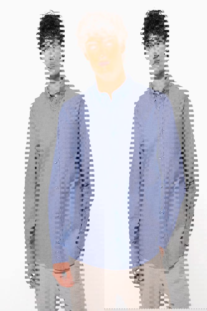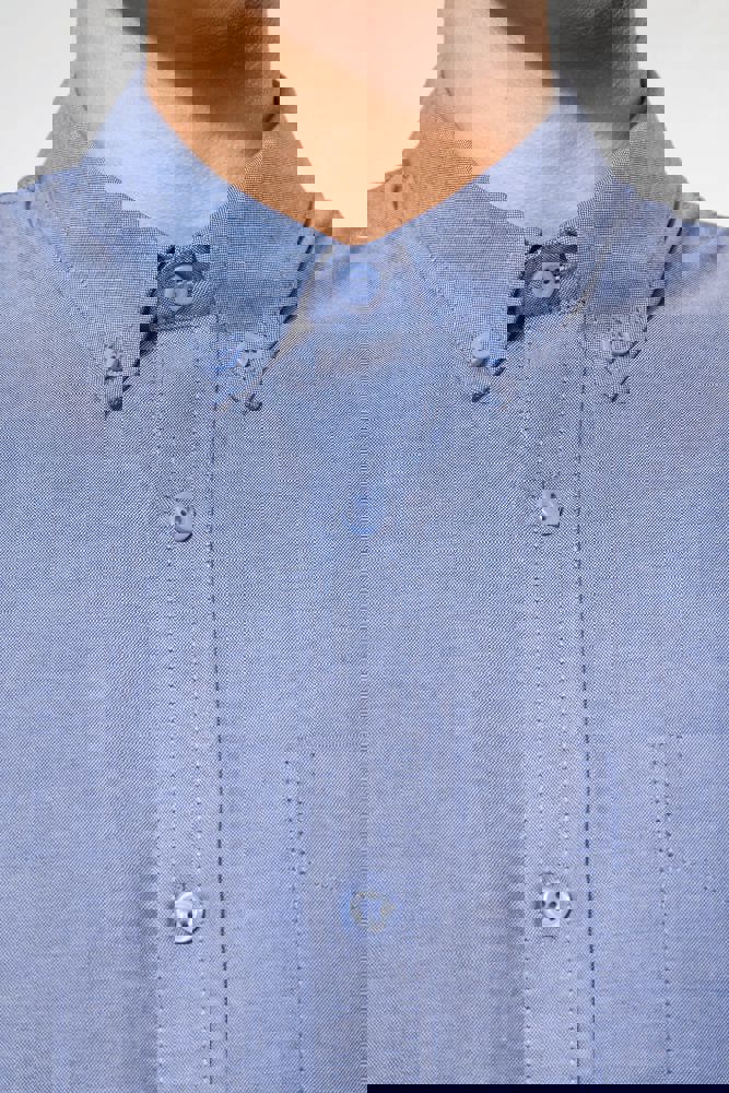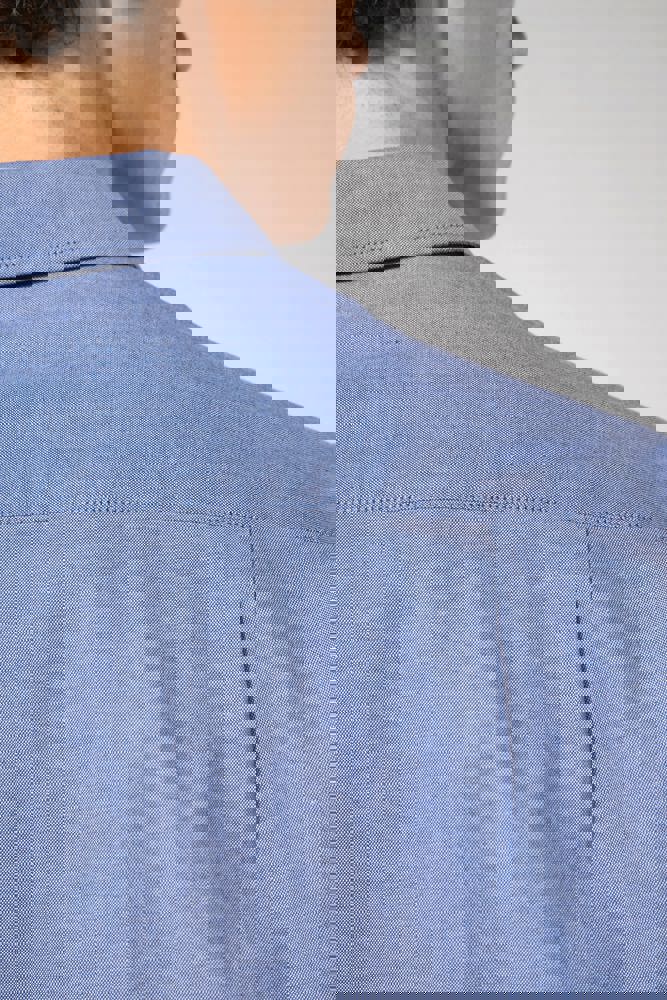 70% oxford katoen / 30% polyester. Gemakkelijk in onderhoud ( Easy Care). Button down. Toon op toon knopen. Borstzakje. Dubbel inzetstuk op de rug en 2 plooitjes. Omgeslagen mouwuiteinden met 2 knopen. Verstelbare omgeslagen mouwen. 2 extra knopen. Afgerond boord aan de onderkant.