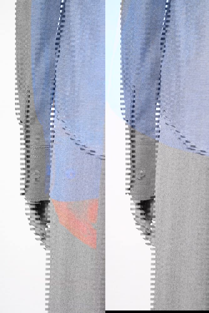 70% oxford katoen / 30% polyester. Gemakkelijk in onderhoud ( Easy Care). Kraag zonder knopen. Toon op toon knopen. 2 knoopjes aan de kraag. Plooitjes op de rug en borst voor een comfortabele pasvorm. Verstelbare mouwen. 2 extra knopen. Afgerond boord aan de onderkant.