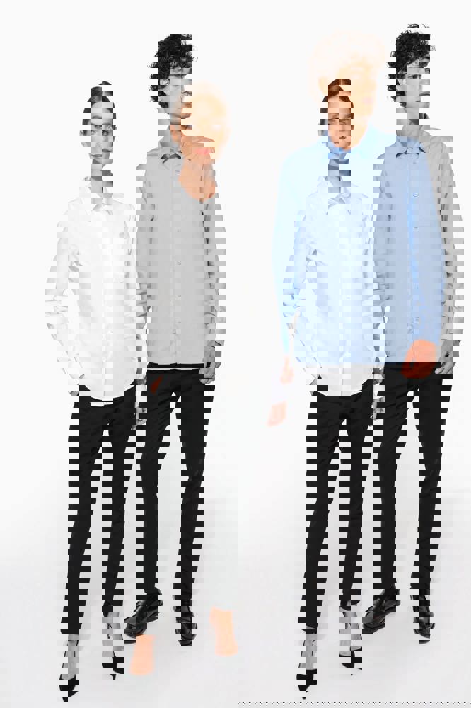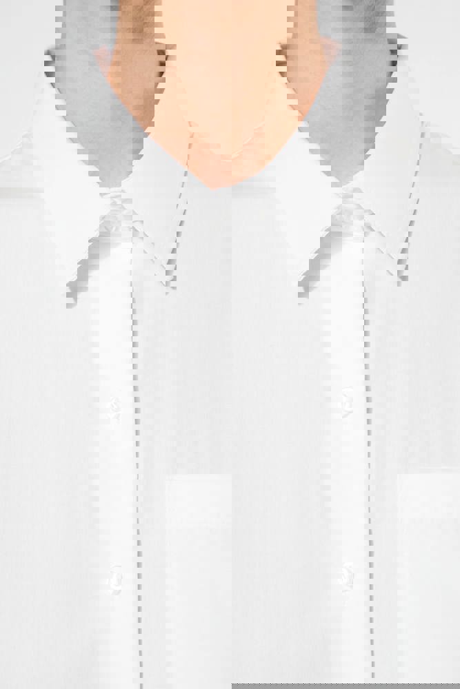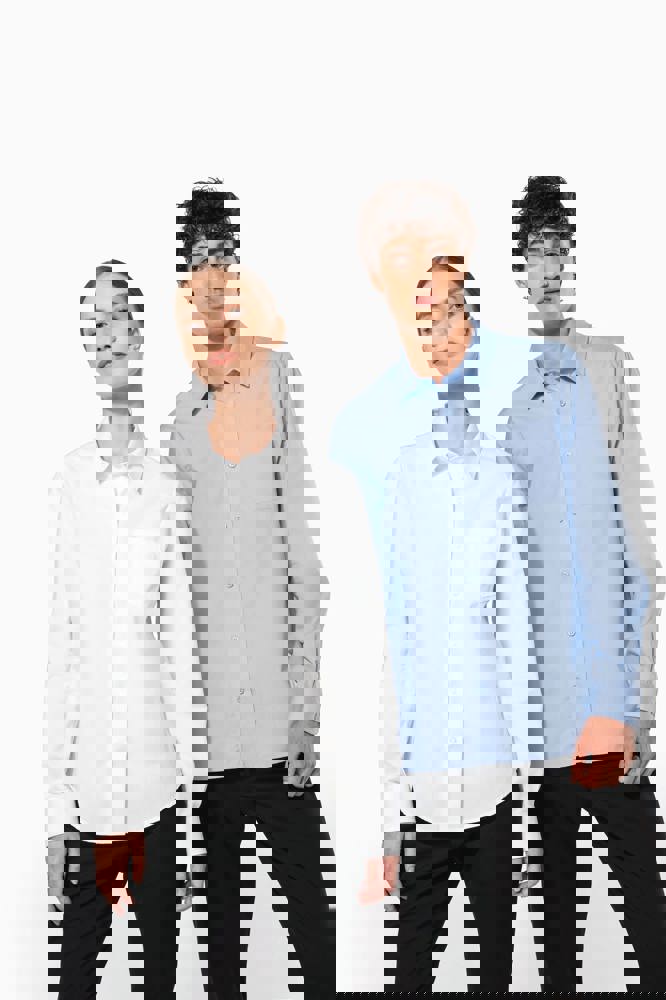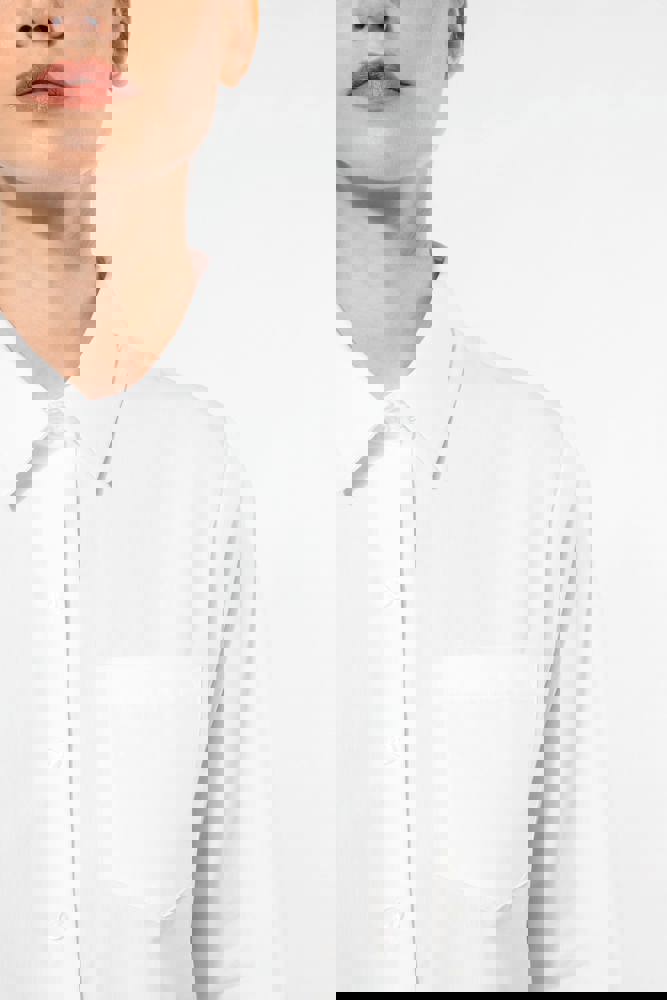 100% popeline katoen. Gemakkelijk in onderhoud ( Easy Care). Kraag zonder knopen. Toon op toon knopen. Borstzakje. Verstelbare mouwen. 1 extra knoop. Afgerond boord aan de onderkant.