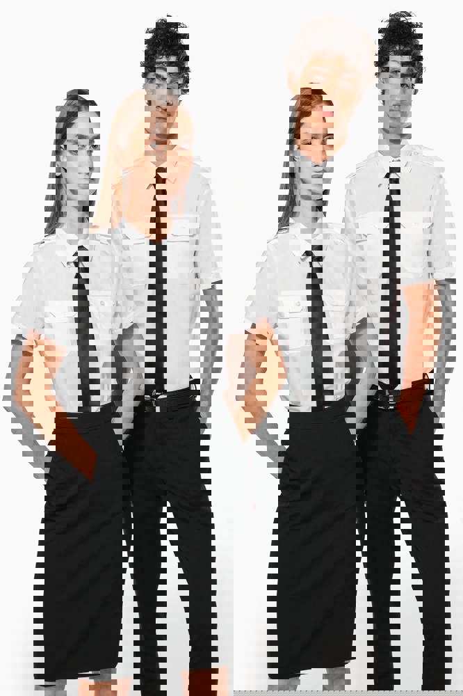 65% polyester / 35% popelinekatoen. Gemakkelijk in onderhoud (EasyCare-behandeling). Toon-op-toon knopen. 2 borstzakken met klep, waarvan aan de linkerkant een met plaats voor een pen. Knooplijst op de schouders om galons te bevestigen (epauletten niet meegeleverd). Afgewerkt met omslag aan de mouwuiteinden.
