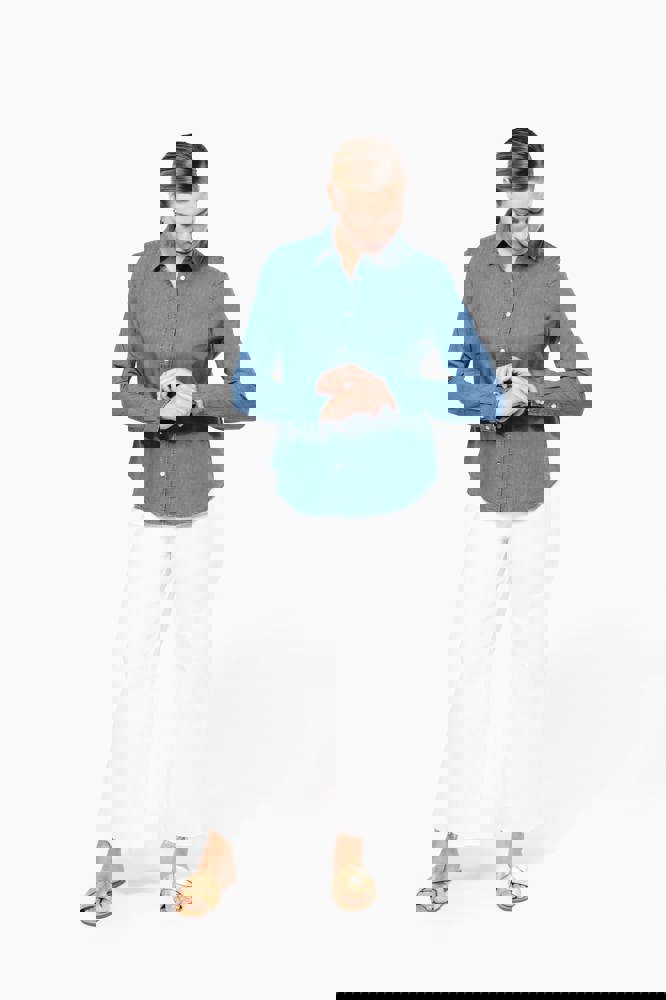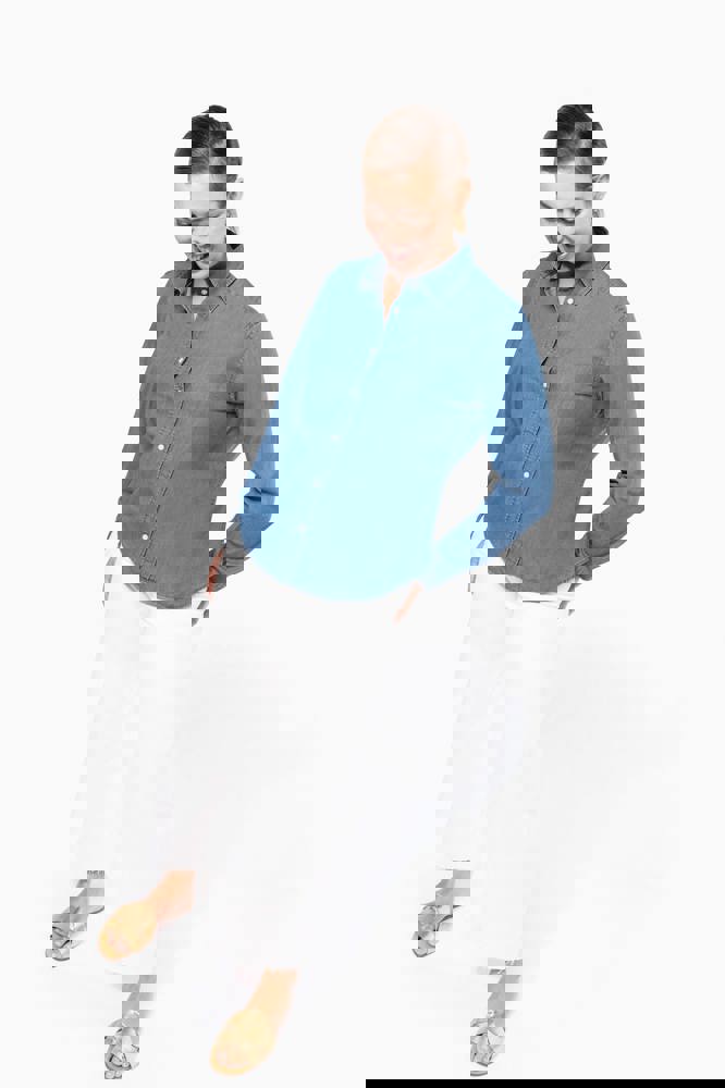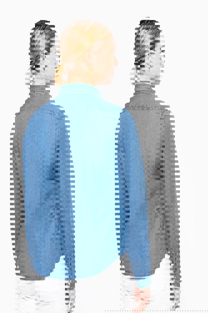100% katoen. Licht canvas met denimlook. Zachte comfortabele stof. Trendy nauwsluitende snit. Kraag zonder knopen met aan de binnenkant een fantasiestrook. Contrasterende knopen. Regelbare manchetten. Dit product heeft een speciale behandeling ondergaan waardoor het zijn vintage look krijgt. Elk item is uniek en kleuren kunnen onderling afwijken door het was-/droogproces.