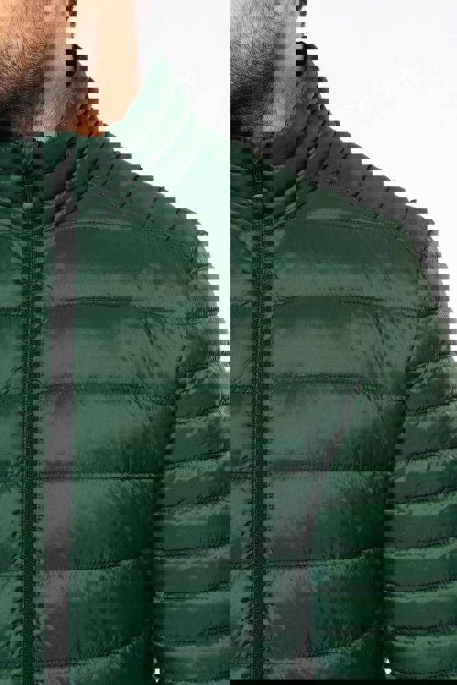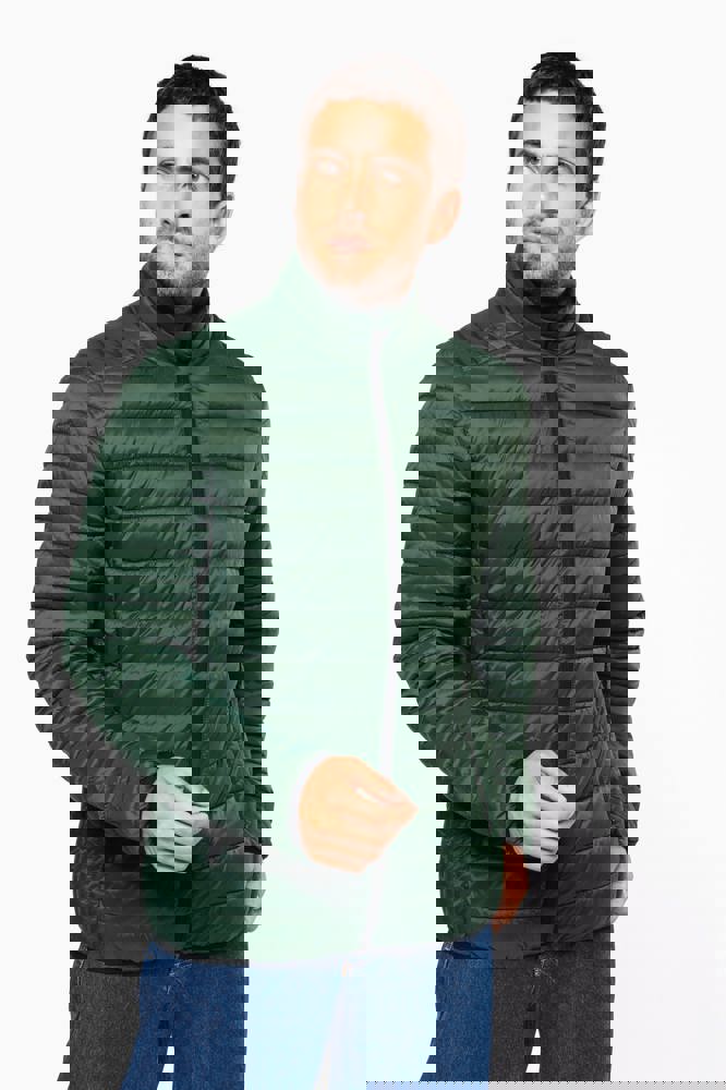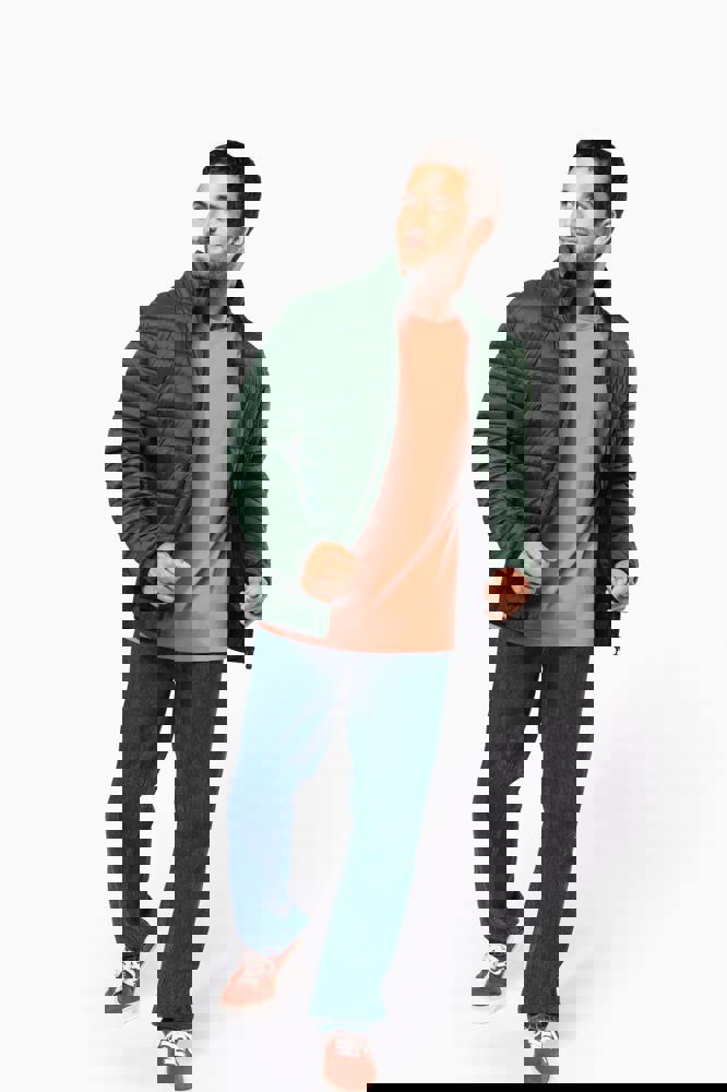 Buitenkant: 100% polyamide. Marl Silver: 70% polyester/ 30%polyamide. Marl Dark Grey: 70% polyamide / 30% polyester. Polyester binnenvoering. Warm en ultralicht. Samenpersbaar in de opbergtas. 2 voorzakken met rits. Contrasterende binnenzijde: Convoy Grey voor Black, Red, Marl Dark Grey en Marl Silver; Navy voor Light Royal Blue, Mineral Green, Dark Khaki en Wine; Black voor Forest Green; Dark Khaki voor Jungle Camo. Toon-op-toon interieur: Burnt Ochre voor Burnt Ochre; Navy voor Navy; White voor White. Geïnjecteerde vulling: het gewicht kan variëren afhankelijk van de zones van het kledingstuk. Het totaalgewicht is indicatief.