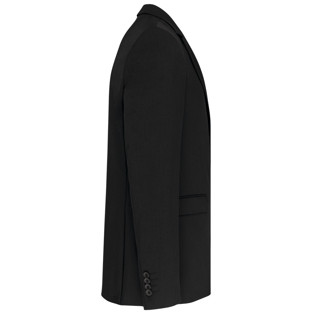 64% polyester / 34% viscose / 2% elasthan. Voering 100% tafpolyester. Jas met 2 knopen. 2 omzoomde zakken met klep aan de voorkant. 1 borstzakje. 2 binnenzakken met knoop en 1 gsm-zak. Mouwuiteinde met 4 knopen. 2 ruimtesplitten op de achterkant. 1 verborgen drukkersrits aan de linkerkant vooraan.