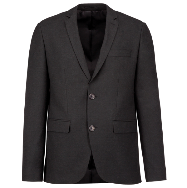 64% polyester / 34% viscose / 2% elasthan. Voering 100% tafpolyester. Jas met 2 knopen. 2 omzoomde zakken met klep aan de voorkant. 1 borstzakje. 2 binnenzakken met knoop en 1 gsm-zak. Mouwuiteinde met 4 knopen. 2 ruimtesplitten op de achterkant. 1 verborgen drukkersrits aan de linkerkant vooraan.