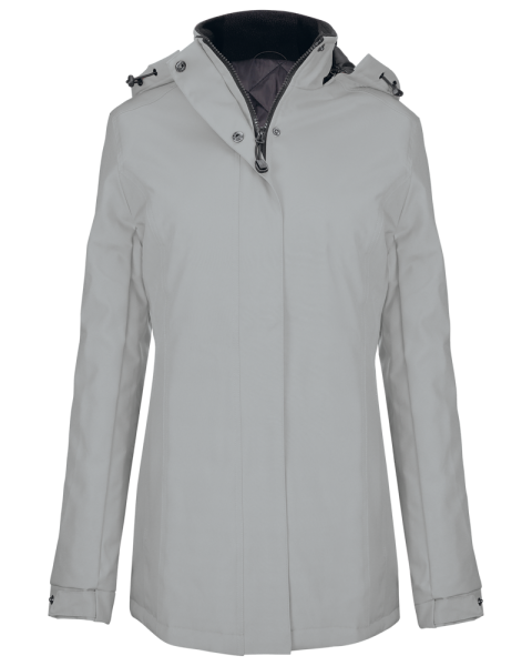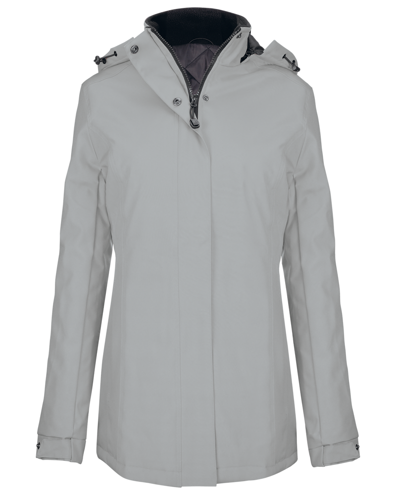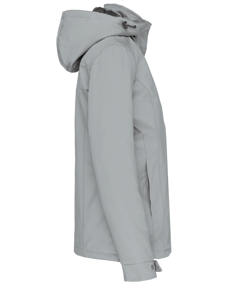 Buitenkant: 100% oxford polyester. Binnenkant: gewatteerde polyester. Ritssluiting met overslag en onzichtbare drukknopen. 2 ritszakken aan de buitenkant. 1 binnenzak. Afneembare capuchon. Kraag met fleecevoering. Drukkersrits.