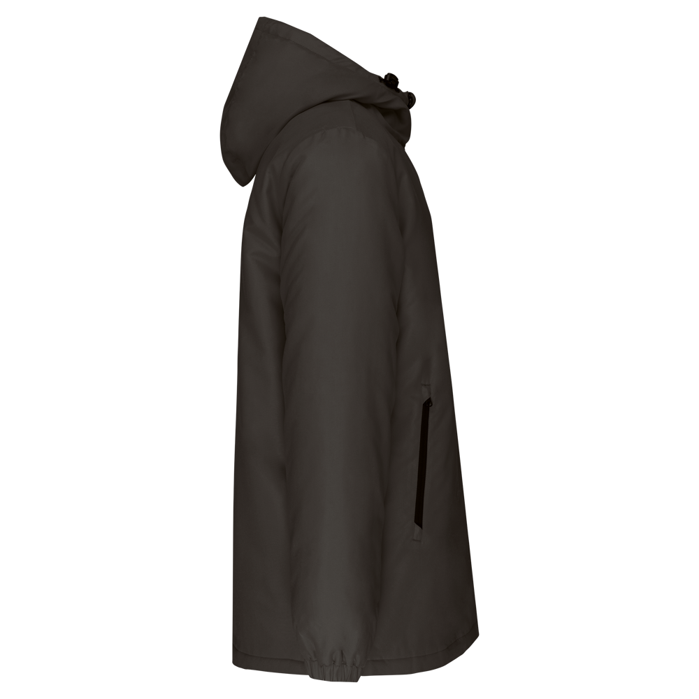 100% polyester. Deze parka is gemaakt van 100% gerecycled polyester post-consumer. Waterafstotende stof. Fluweelachtige afwerking voor een zachter gevoel. Voering van zwart tafpolyester 210T. Gewatteerde binnenkant in 100% polyester. Comfortabele snit. Nylon ritssluiting en metalen ritstrekker. Capuchon met 3 panelen en voering in polyester, met aanrijgkoordjes en stopper. 2 ritszakken aan de voorkant. 1 binnenzak met klittenbandsluiting. Elastische mouwuiteinden. Verlengd achterpand voor meer comfort. Stoffen patch aan de binnenkant van de kraag voor de personalisatie. Blinde drukkersrits onderaan en aan de linkerkant vooraan. Geen merklabel, voor eenvoudige personalisatie.