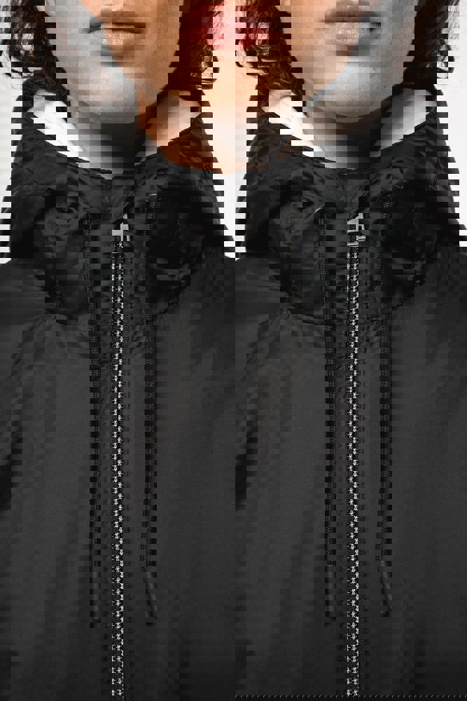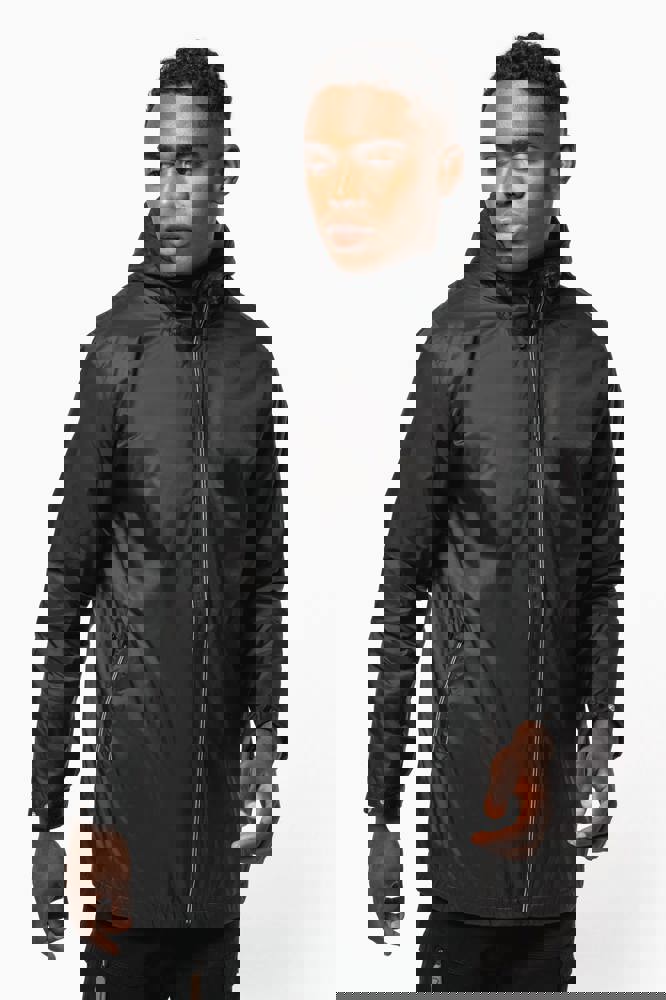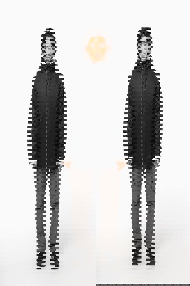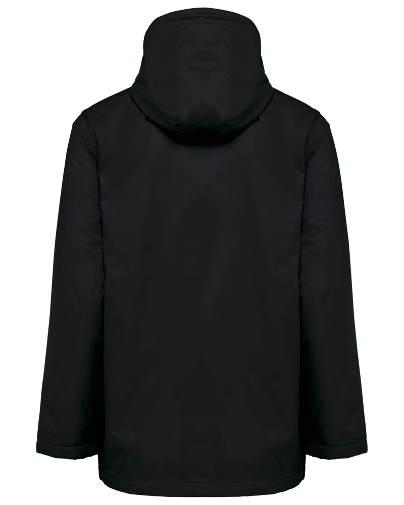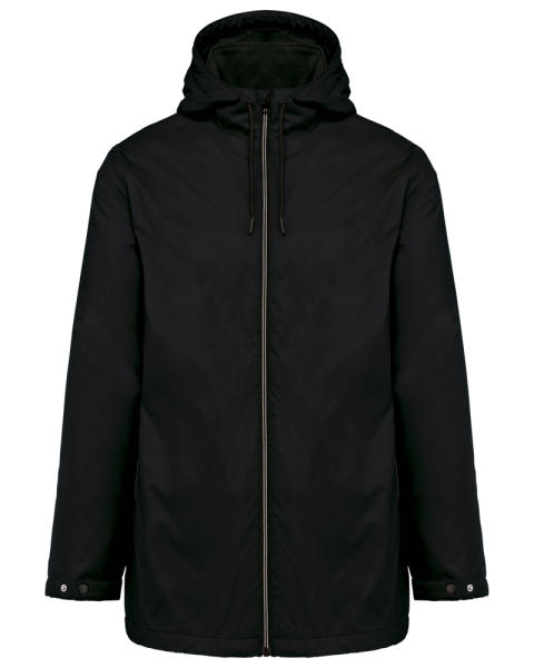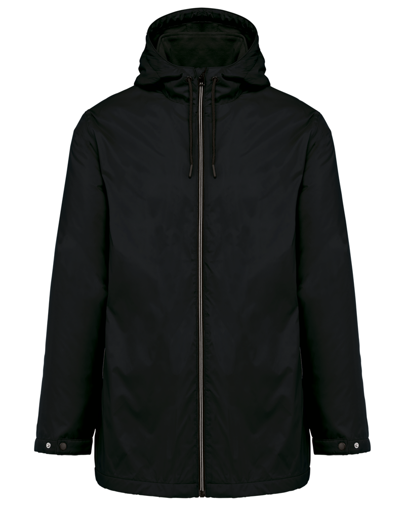 100% polyamide 210T met acrylcoating. Voering van 100% microfleece polyester. Rechte snit. Het lichaam, de kraag en de capuchon zijn gevoerd met toon op toon microfleece. Gewatteerde mouwen met polyester voering. Zwarte ritssluitingen met kettinkje van zilverkleurig nylon. 2 ritszakken aan de voorkant. 1 binnenzak met klittenbandsluiting. Gevoerde, driedelige capuchon met zwarte aanrijgkoordjes. Aan de mouwuiteinden zitten 2 drukknopen. Halvemaanvormige halsopening op de achterkant, voor eenvoudige personalisatie van het merk aan de binnenkant. Ophanglint in de kraag. Blinde drukkersrits op de borst links en onderaan het kledingstuk. Tear-away merklabel.